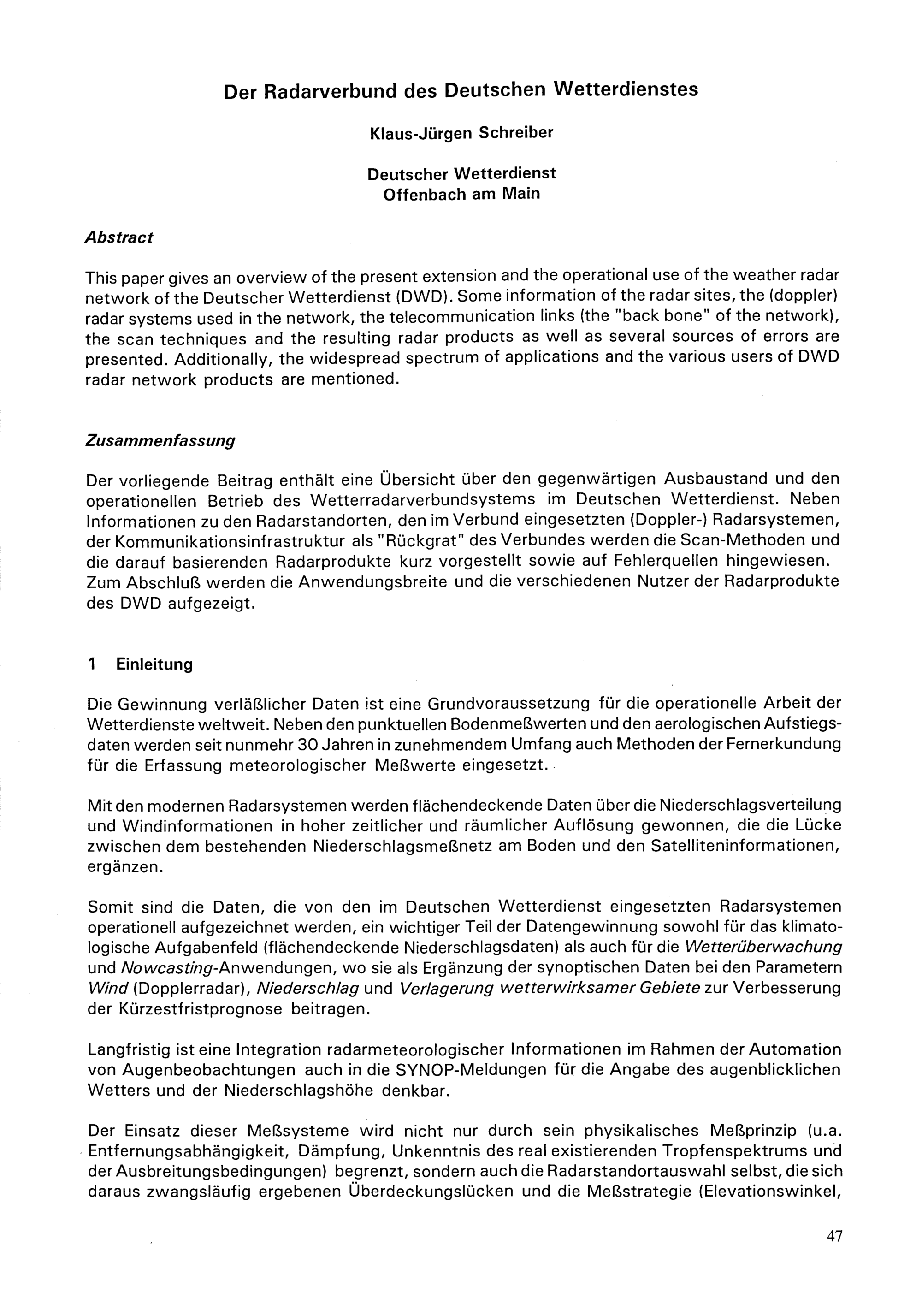 Schreiber, H.J.: Der Radarverbund des Deutschen Wetterdienstes