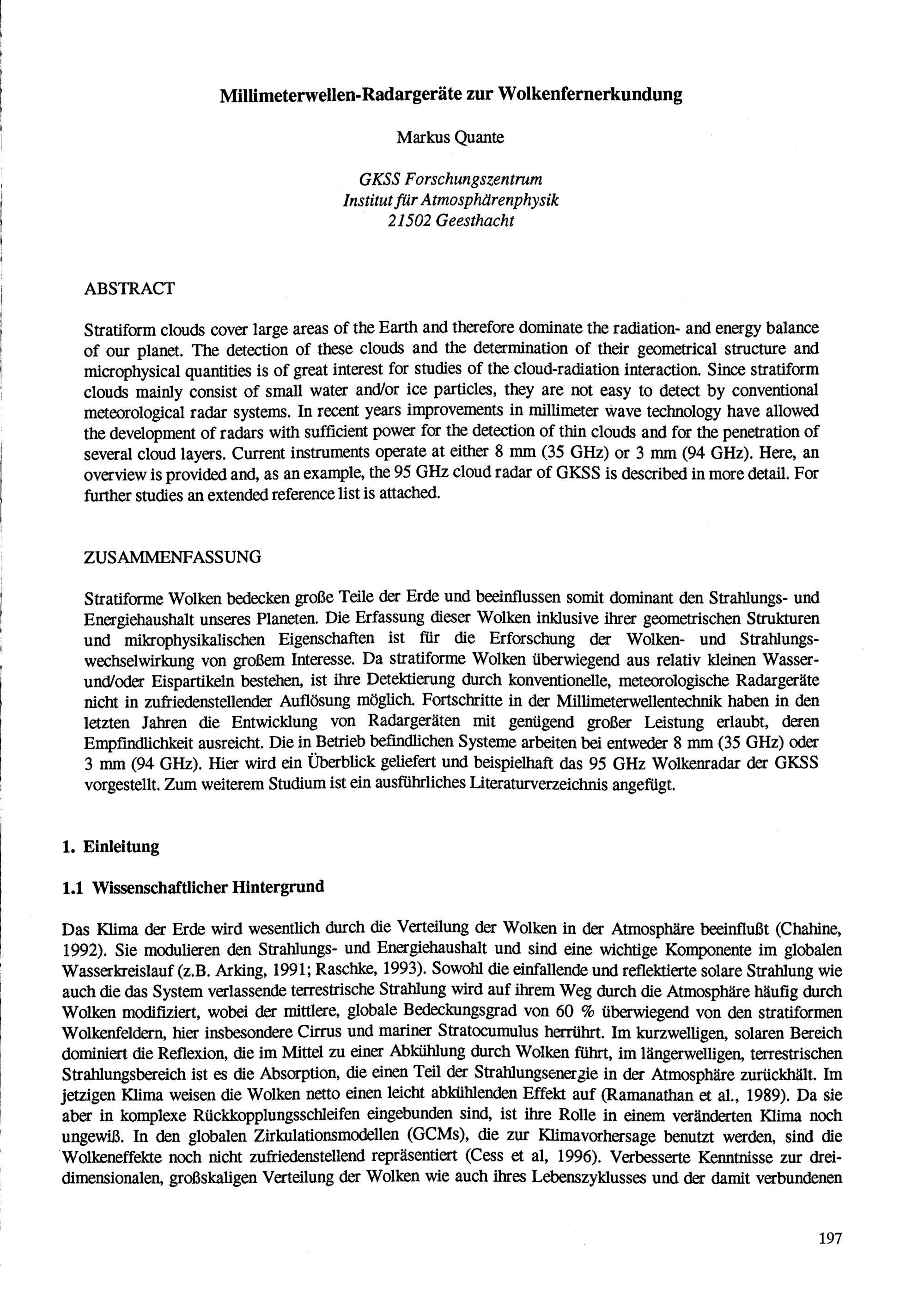 Steinhagen, H.; Lehmann,V.: Windprofiler Radar-Meßprinzip und Signalverarbeitung