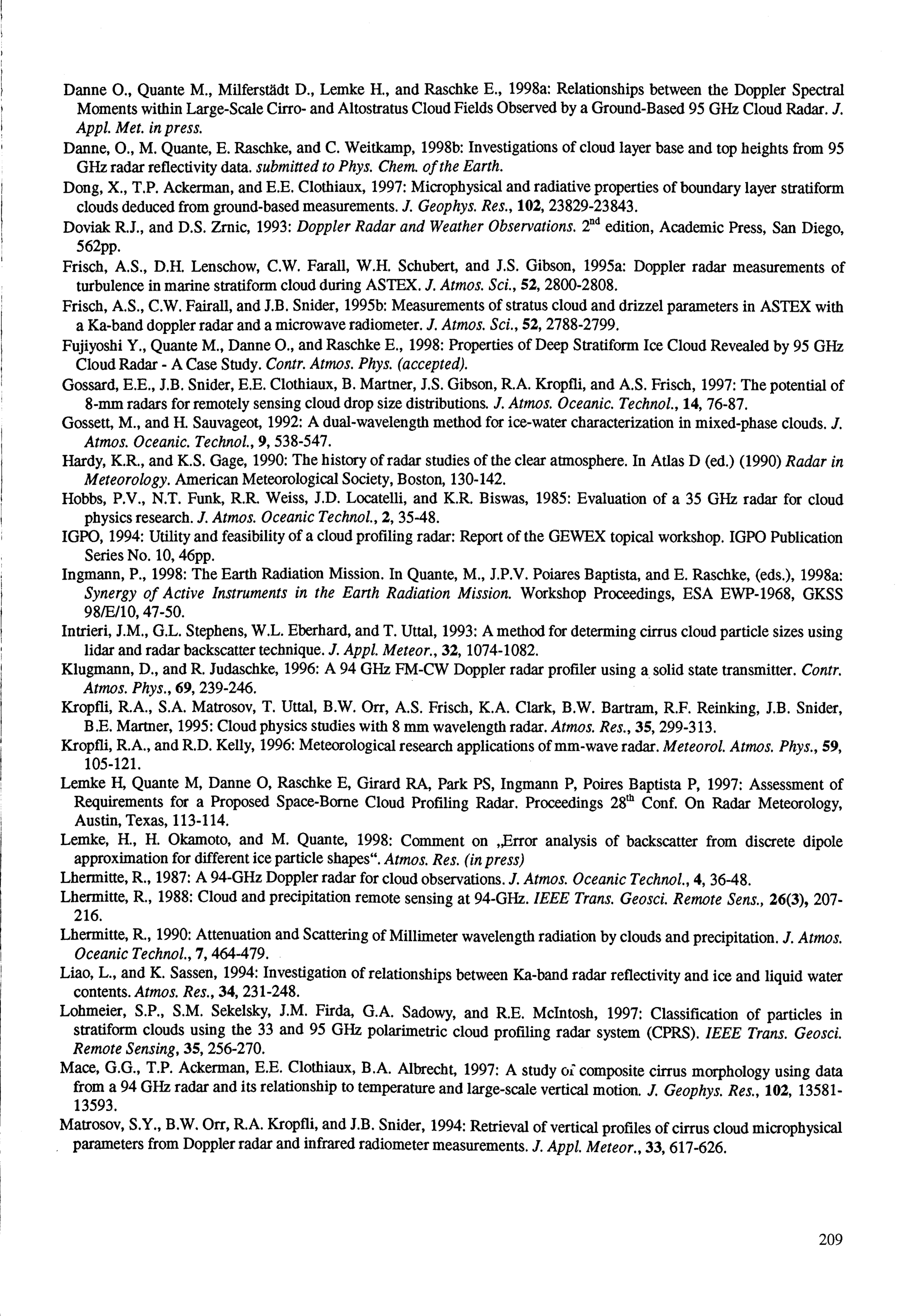Steinhagen, H.; Lehmann,V.: Windprofiler Radar-Meßprinzip und Signalverarbeitung