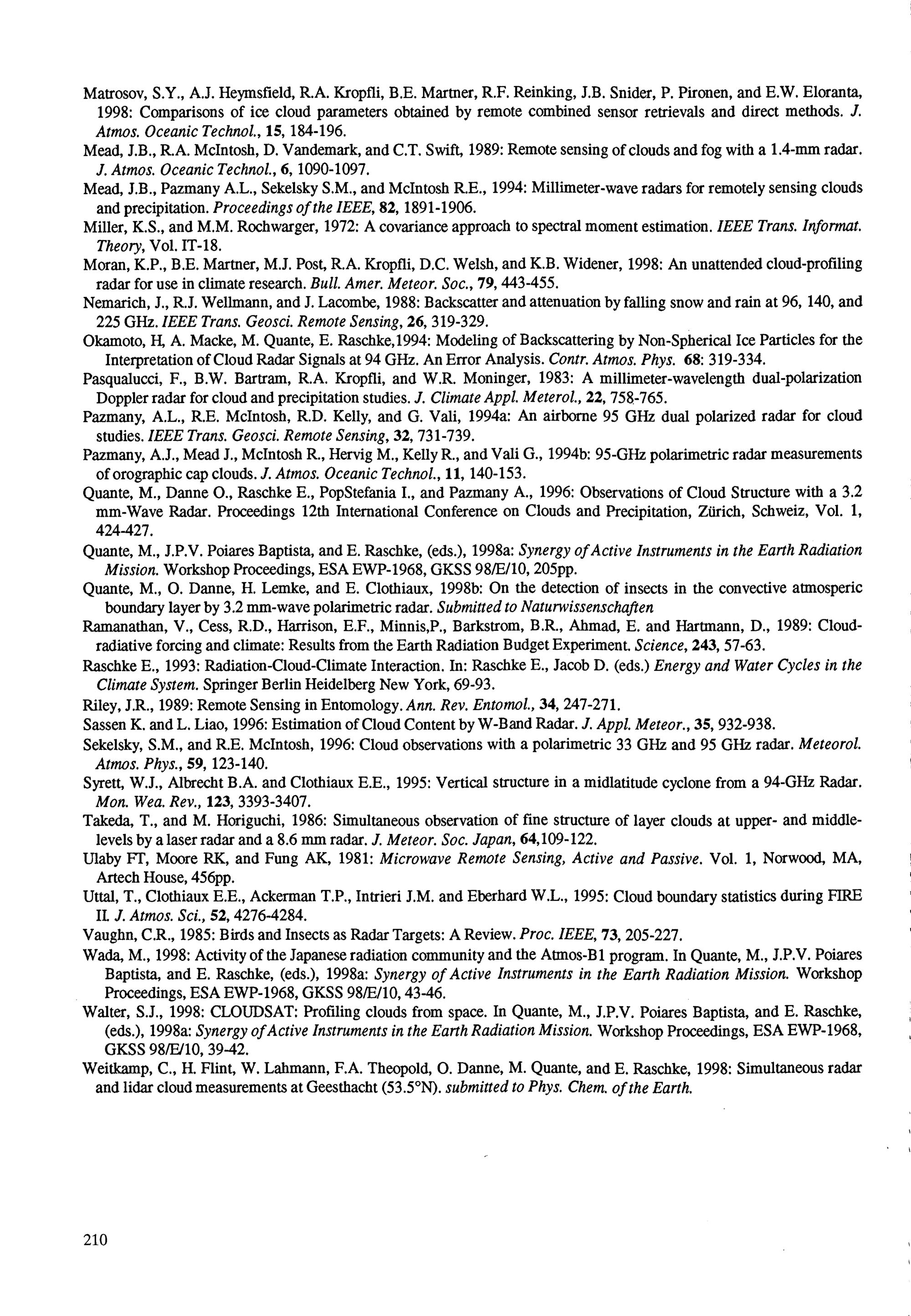 Steinhagen, H.; Lehmann,V.: Windprofiler Radar-Meßprinzip und Signalverarbeitung