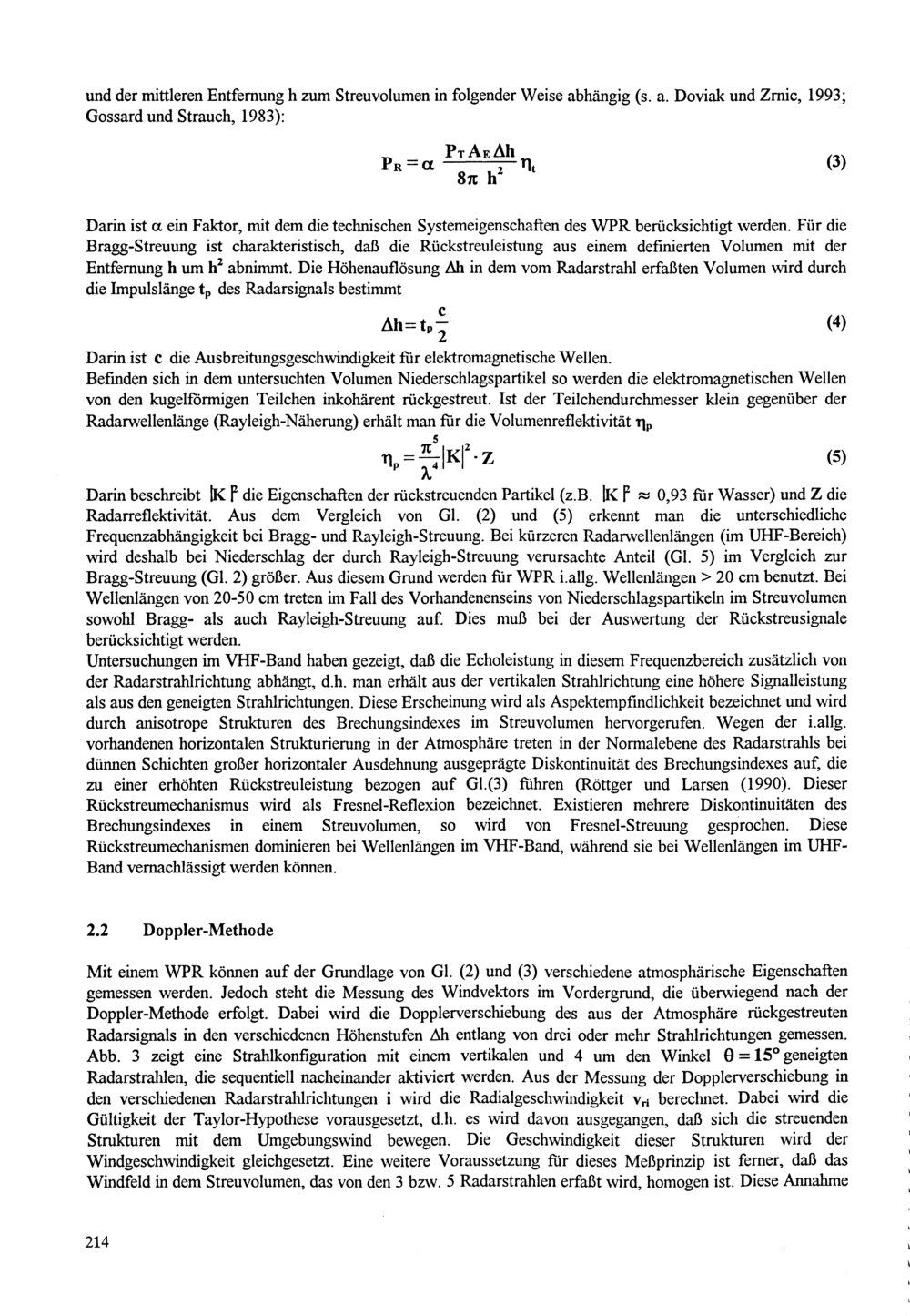 Steinhagen, H.; Lehmann,V.: Windprofiler Radar-Meßprinzip und Signalverarbeitung