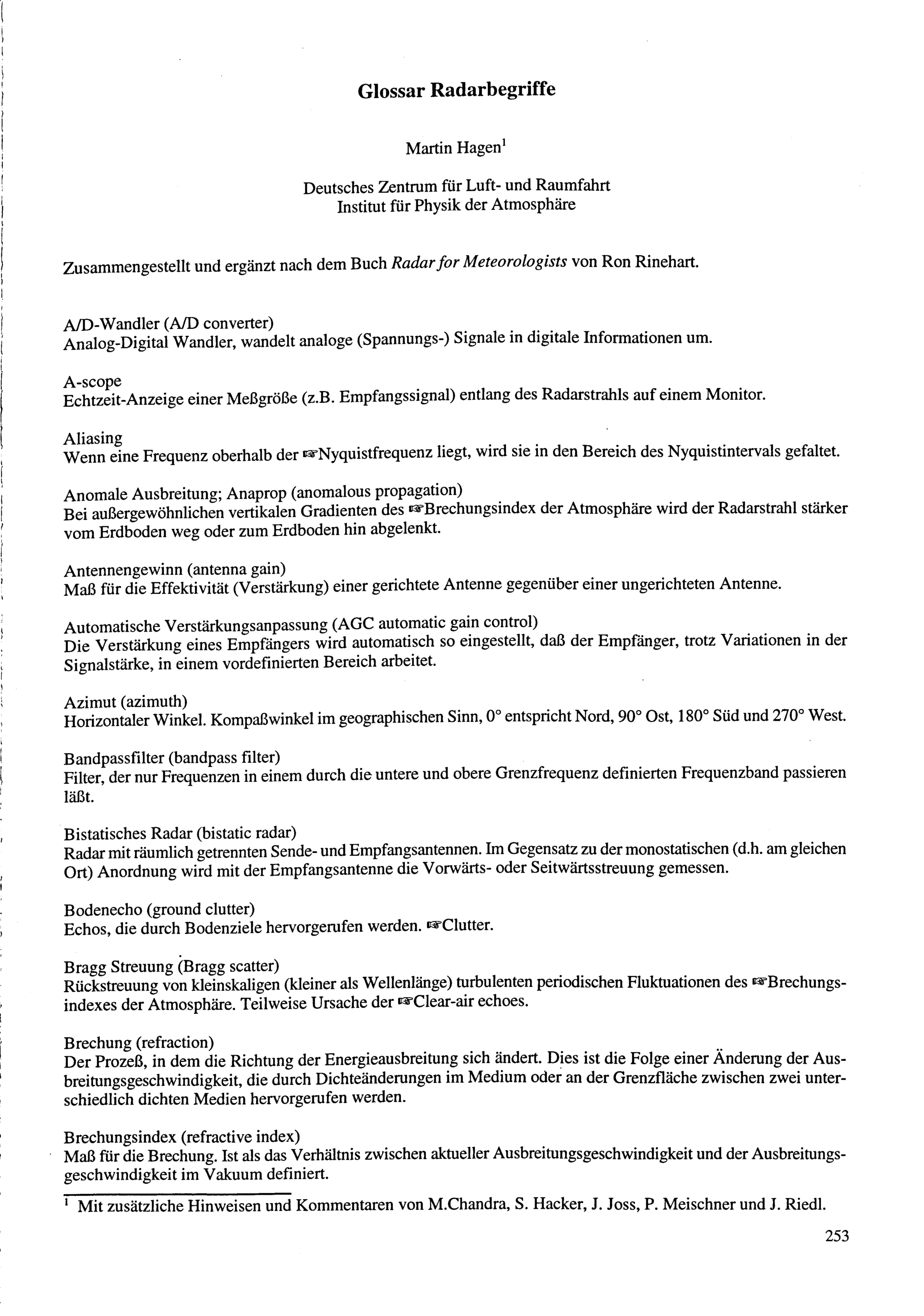 Steinhagen, H.; Lehmann,V.: Windprofiler Radar-Meßprinzip und Signalverarbeitung