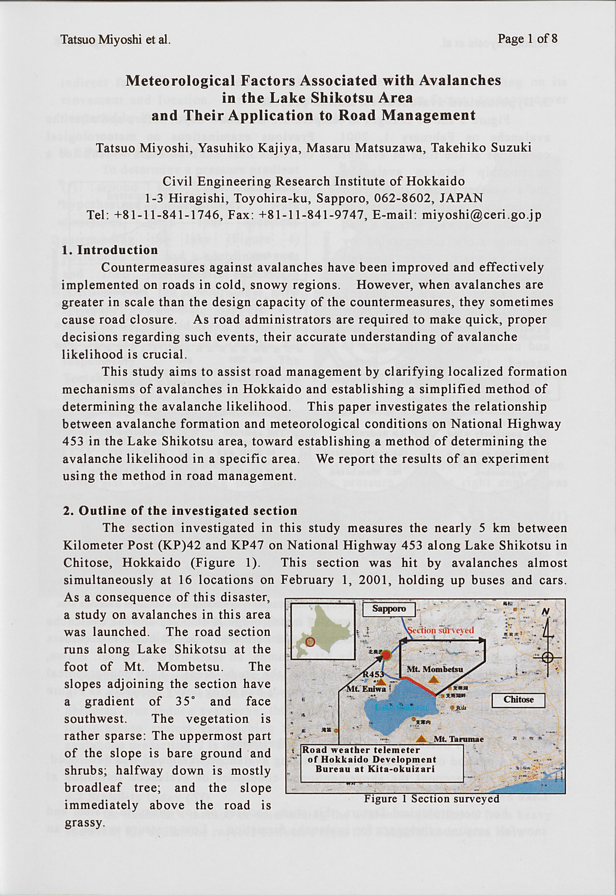 Tatsuo Miyoshi et al.: Meteorological Factors Associated with Avalanches in the...