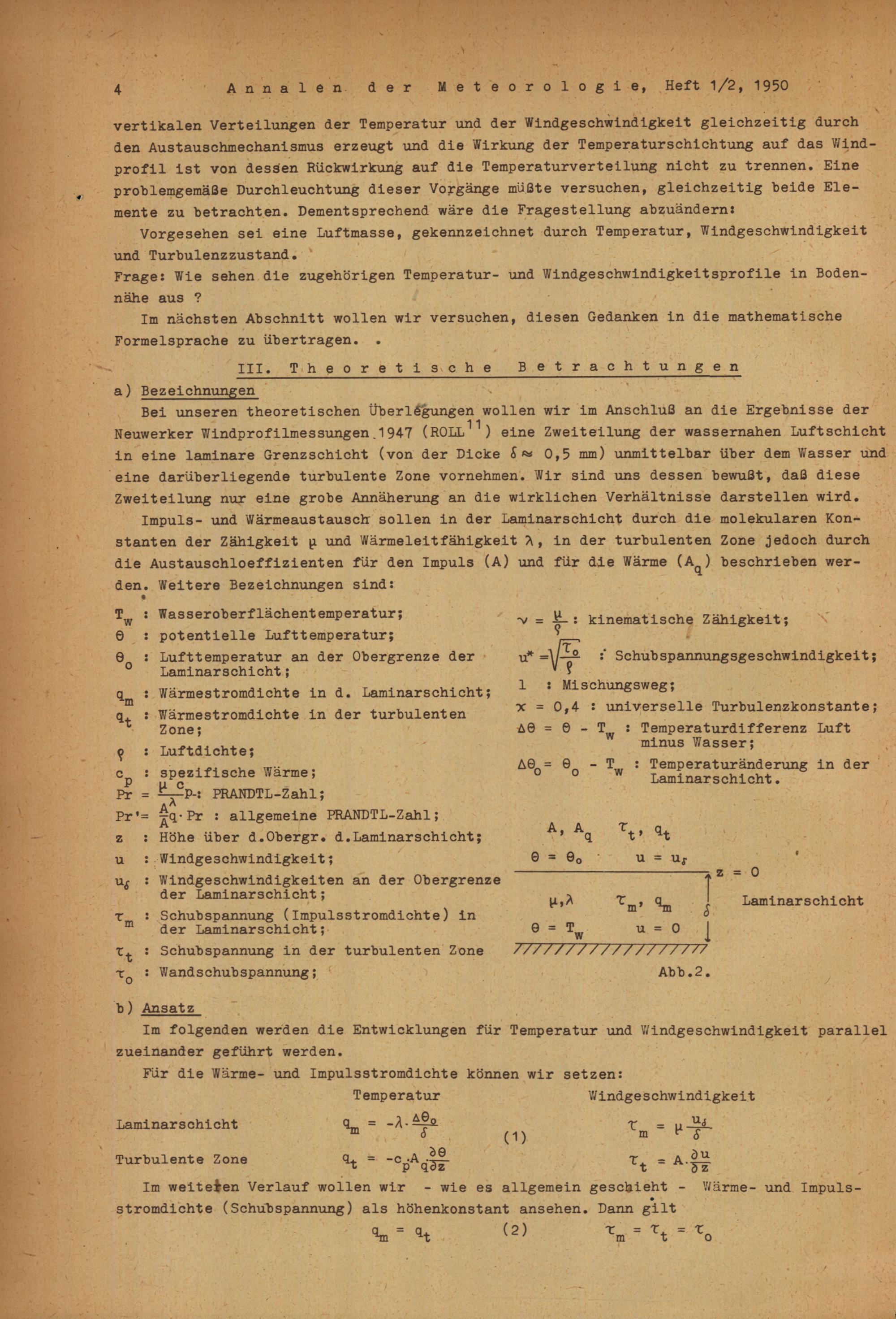 Gedanken über den Zusammenhang der vertikalen Profile von Windgeschwindigkeit und Temperatur in der wassernahen Luftschicht