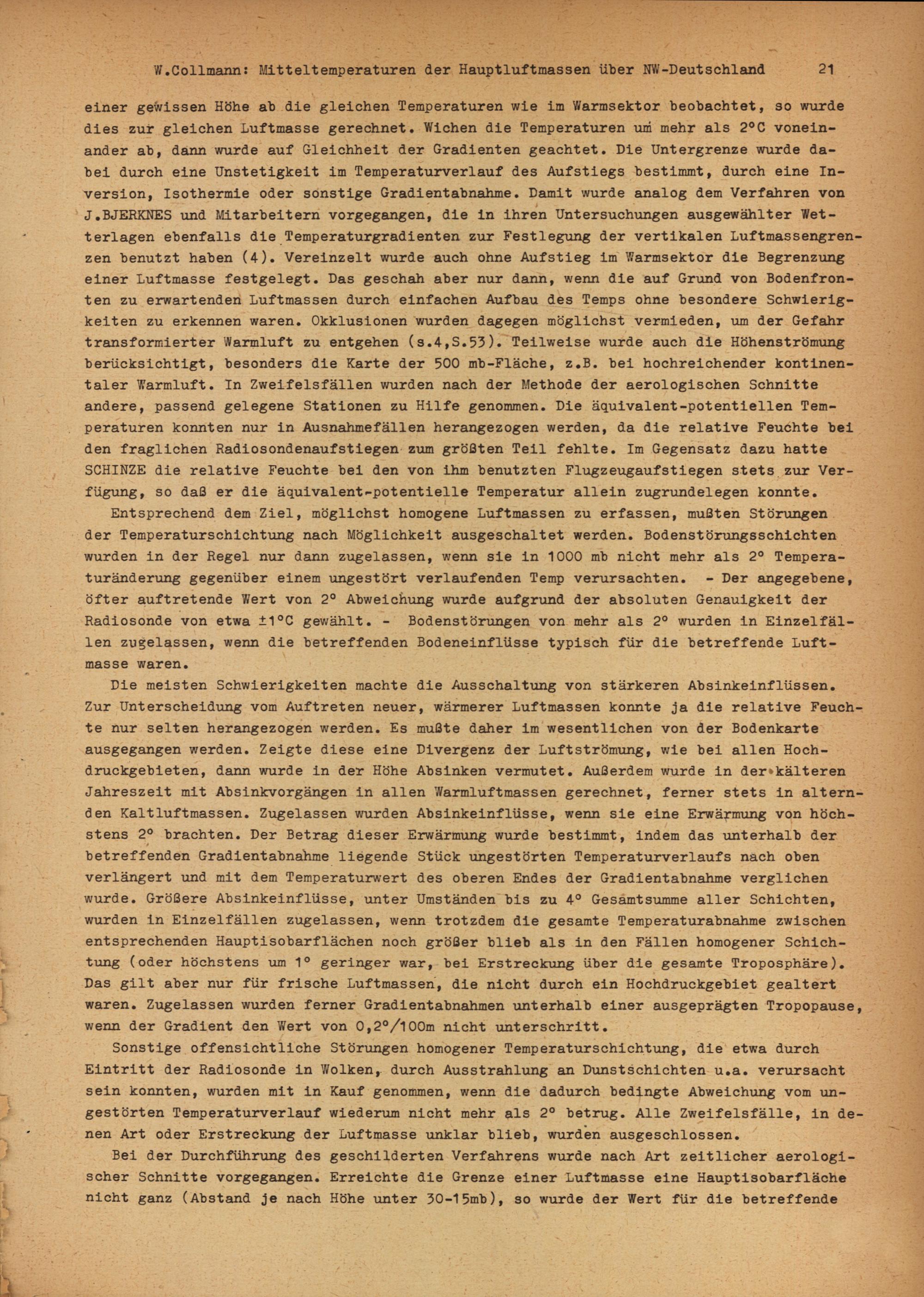 Troposphärische Mitteltemperaturen der Hauptluftmassen über Nordwestdeutschland