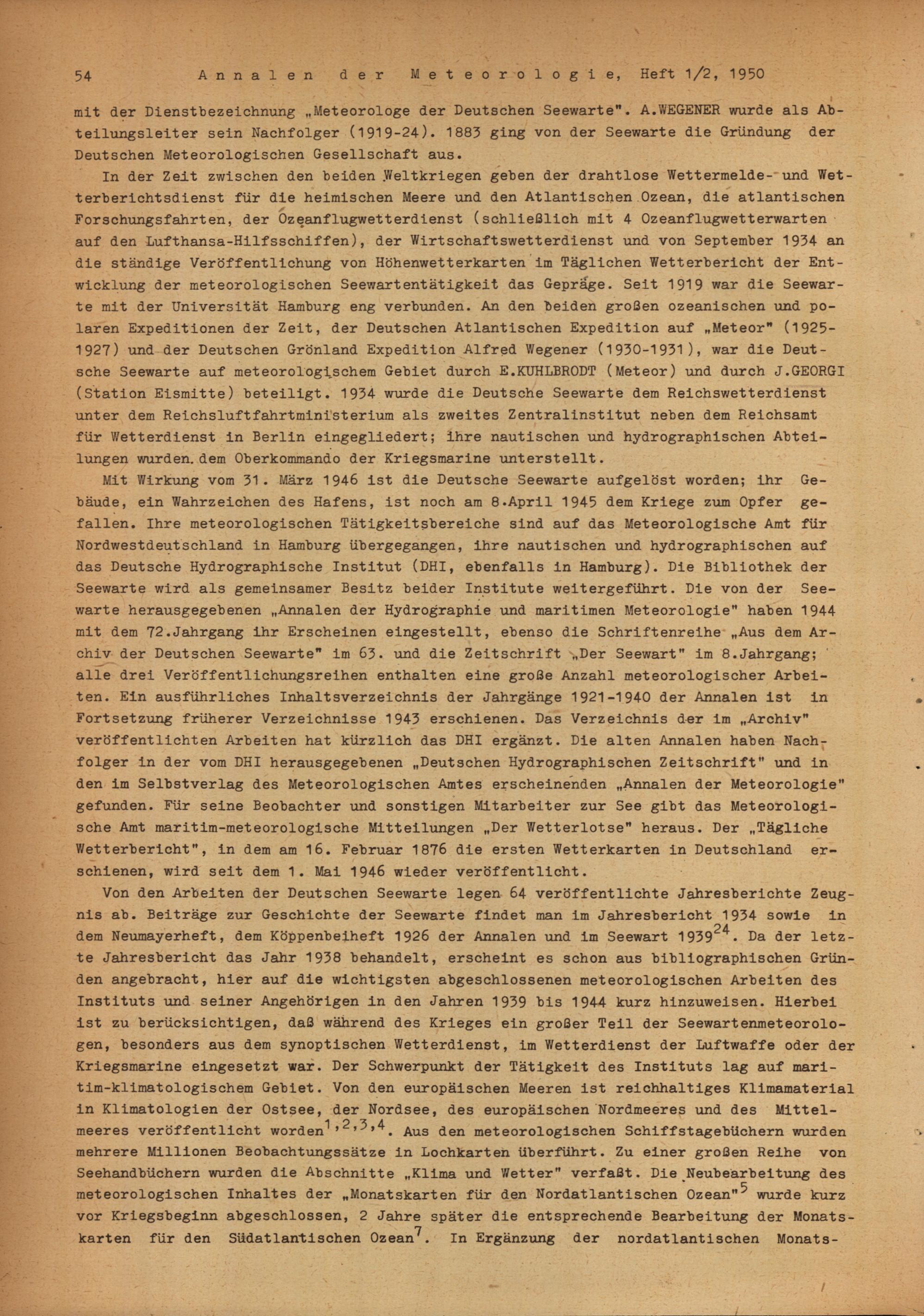 Zur Geschichte der meteorologischen Arbeit an der Deutschen Seewarte, Hamburg