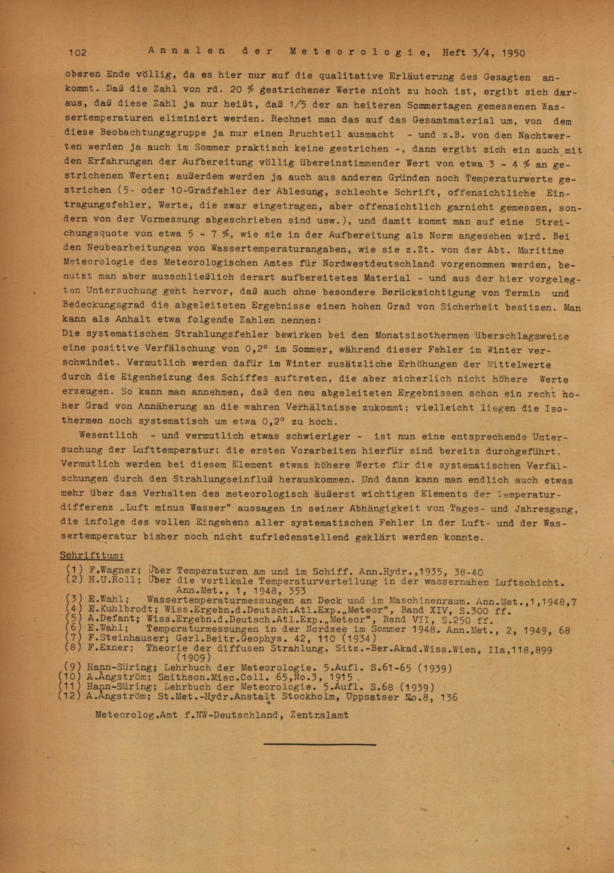 Strahlungseinflüsse bei der Wassertemperaturmessung an Bord von Schiffen