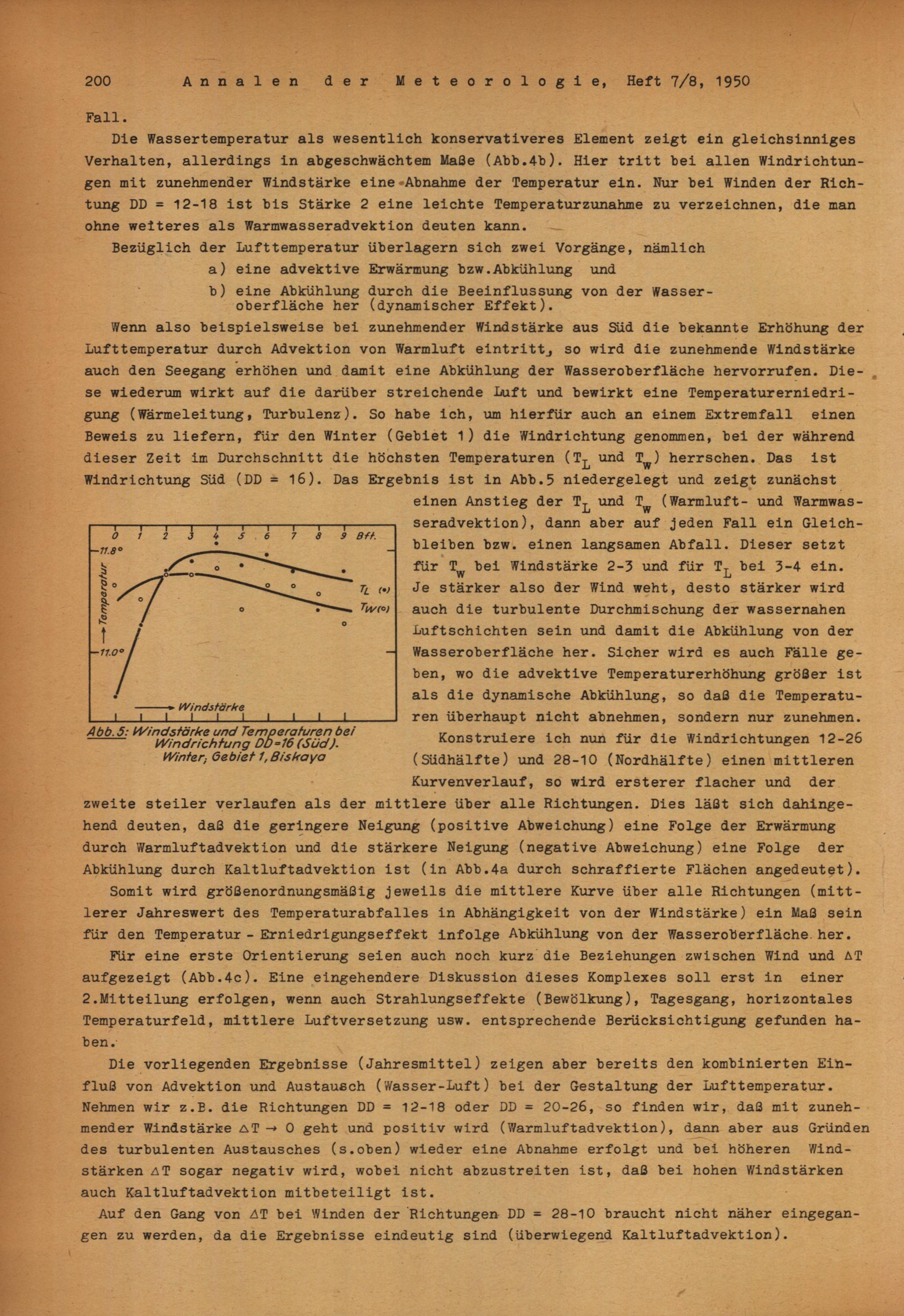 Der Einfluß des Windes auf die Wassertemperaturen des Ozeans und ihr Zusammenwirken mit der Lufttemperatur