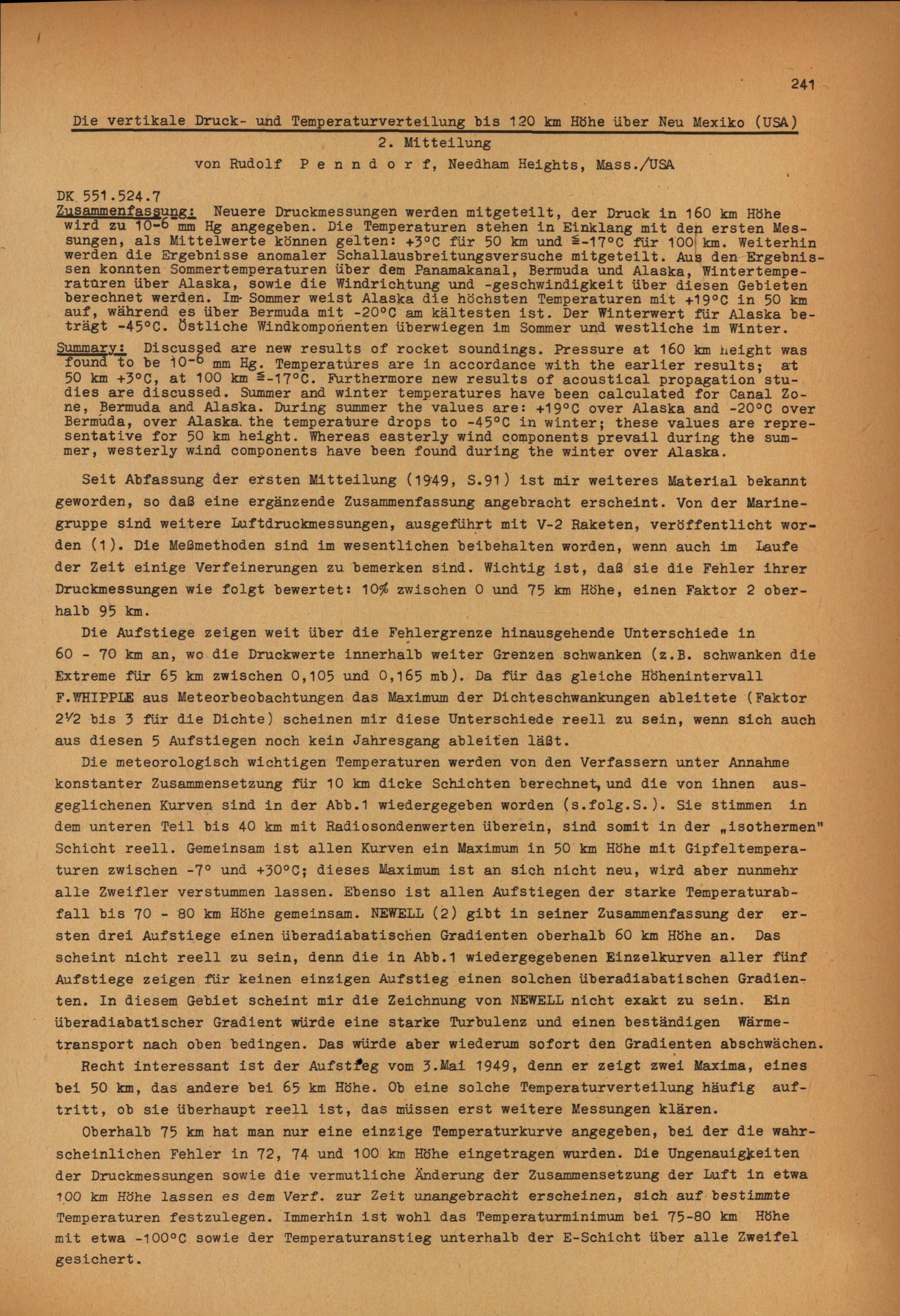 Die vertikale Druck- und Temperaturverteilung bis 120 km Höhe über Neu Mexiko (USA)
