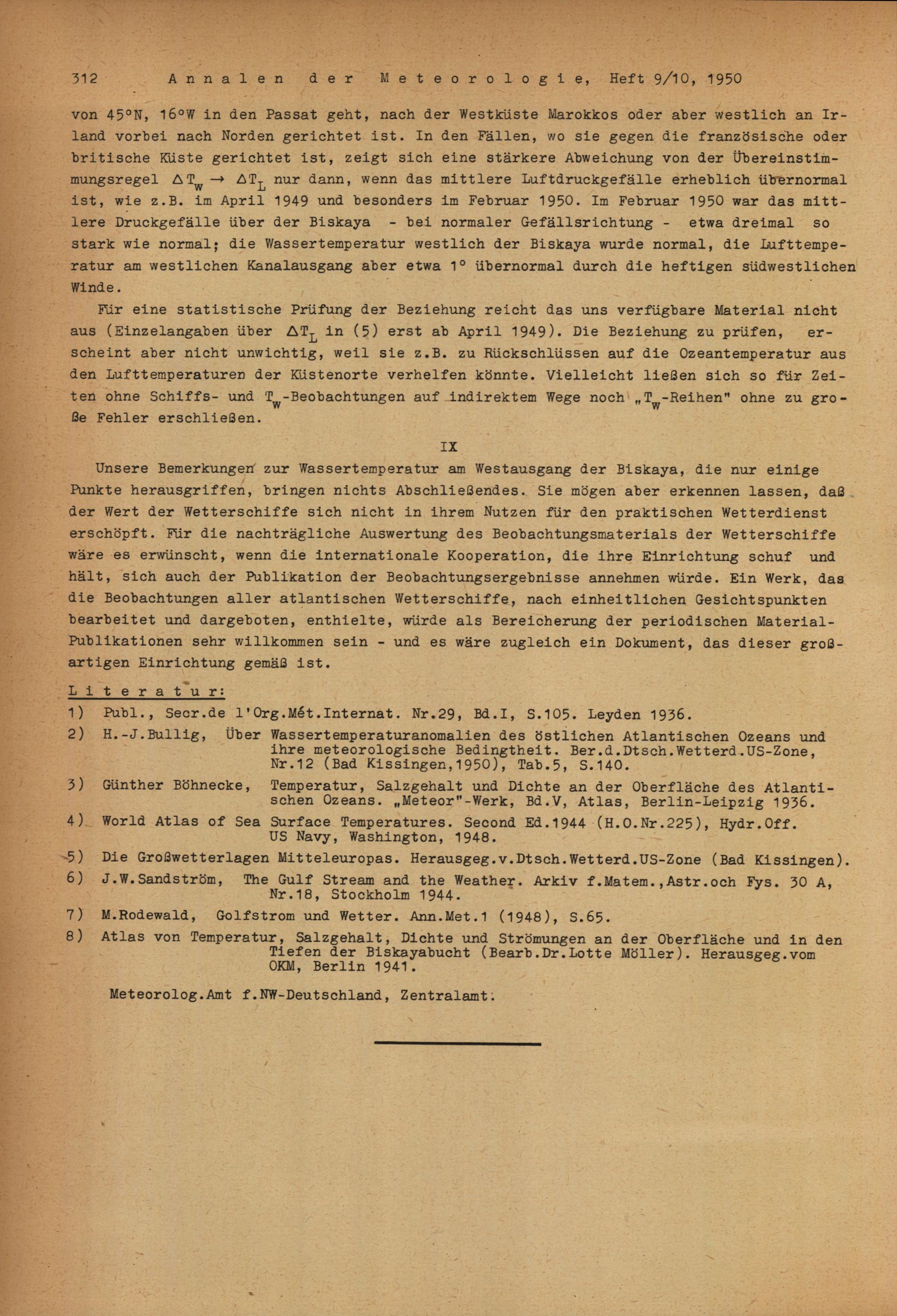Einige Bemerkungen zur Wassertemperatur vor dem Westausgang der Biskaya