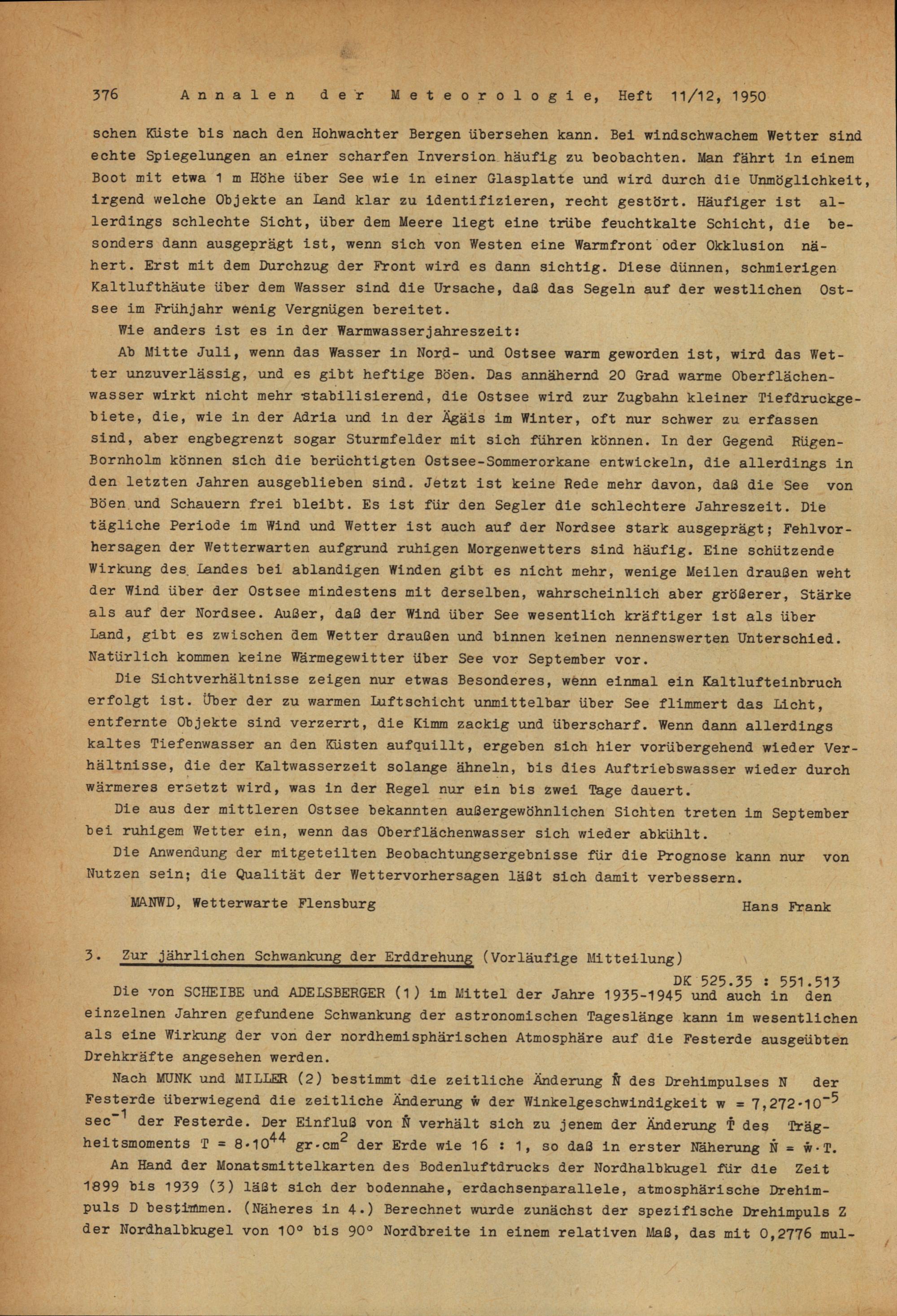 Der Einfluß des Windes auf die Wassertemperatur des Ozeans und ihr Zusammenwirken mit der Lufttemperatur