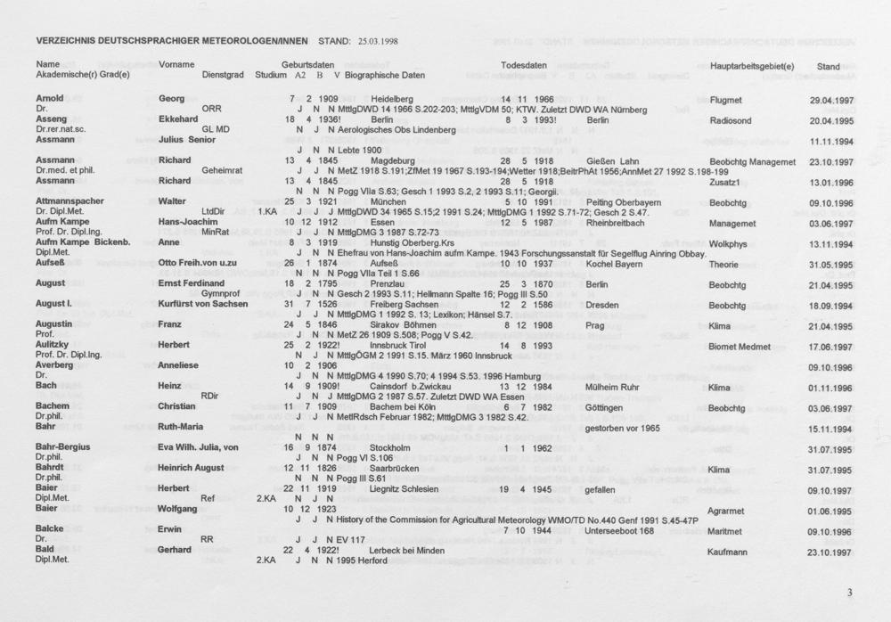 Meteorologen und Meteorologinnen aus dem deutschen Sprachraum : ein biographisches Findbuch ; Auszug aus der Wolfgang-von-Bezold-Sammlung der Deutschen Meteorologischen Gesellschaft e. V. / zsgest. von Rudolf F. Paulus ; ...