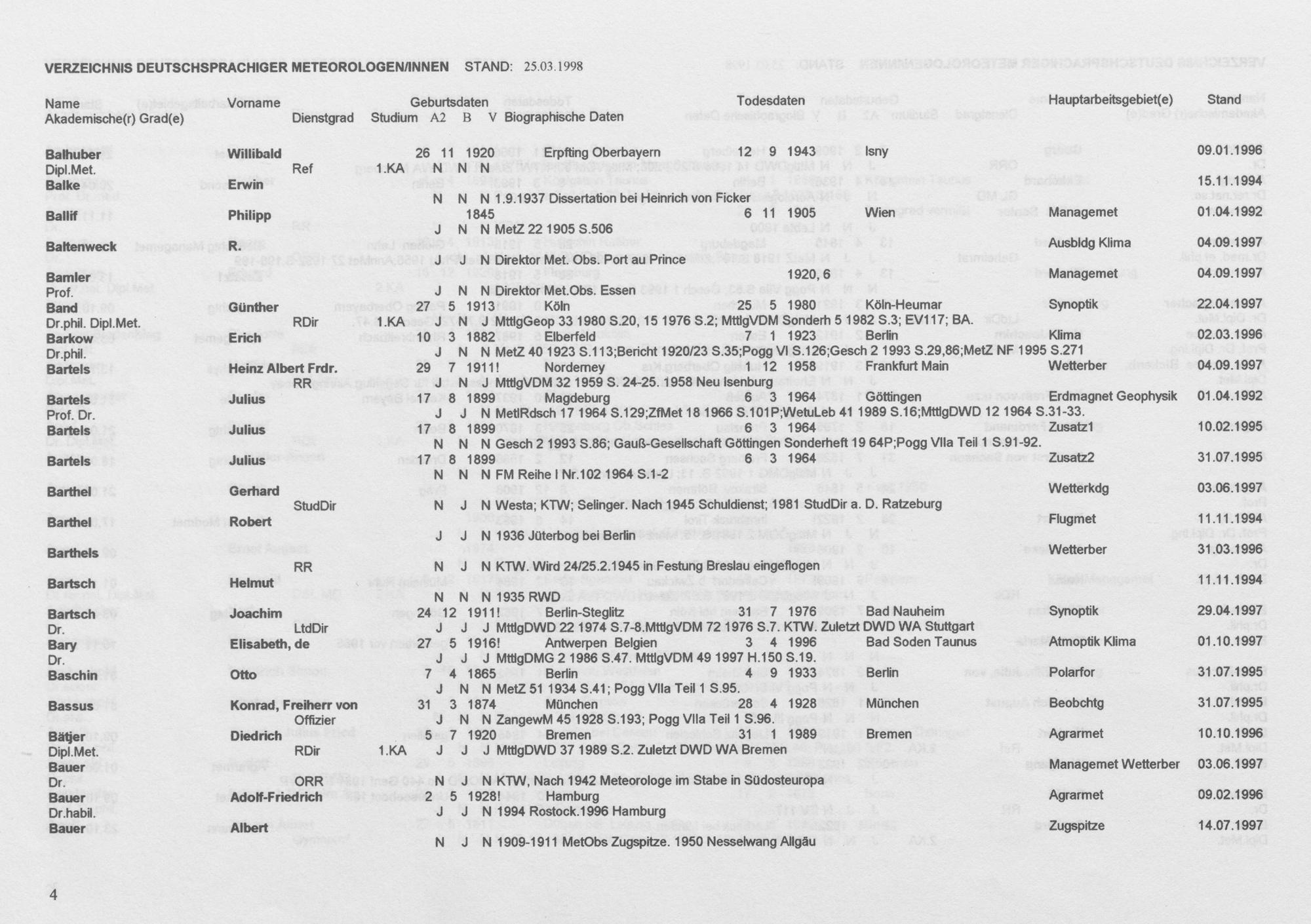 Meteorologen und Meteorologinnen aus dem deutschen Sprachraum : ein biographisches Findbuch ; Auszug aus der Wolfgang-von-Bezold-Sammlung der Deutschen Meteorologischen Gesellschaft e. V. / zsgest. von Rudolf F. Paulus ; ...