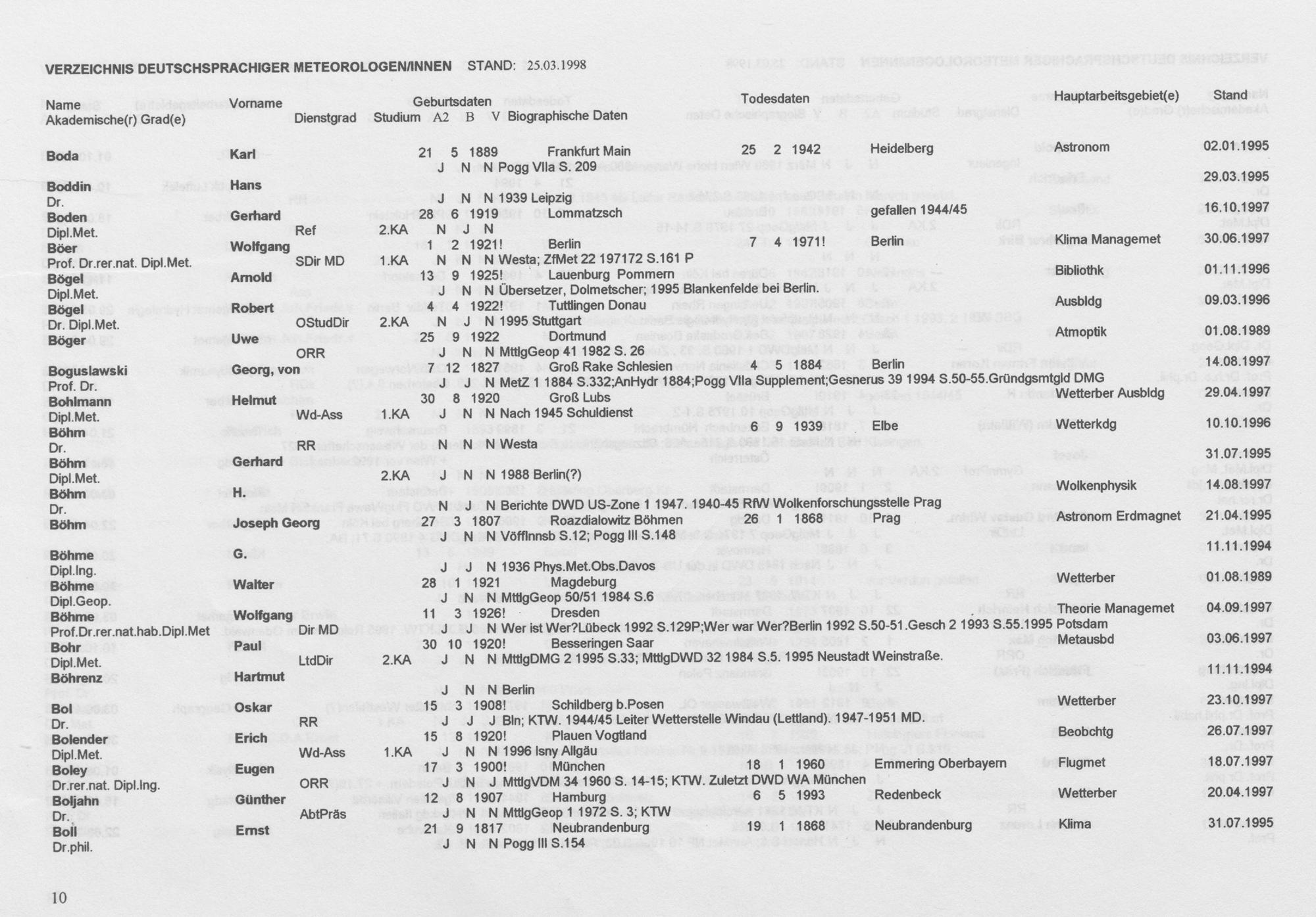 Meteorologen und Meteorologinnen aus dem deutschen Sprachraum : ein biographisches Findbuch ; Auszug aus der Wolfgang-von-Bezold-Sammlung der Deutschen Meteorologischen Gesellschaft e. V. / zsgest. von Rudolf F. Paulus ; ...
