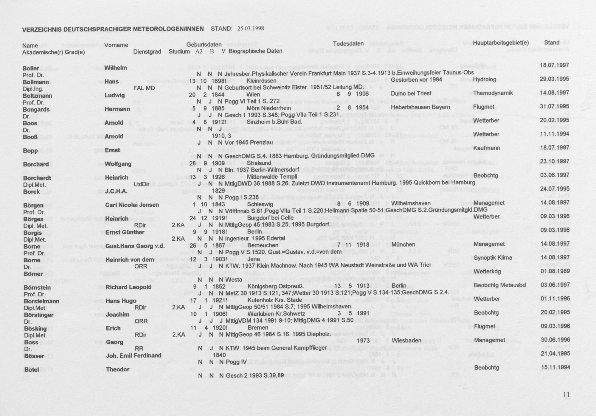Meteorologen und Meteorologinnen aus dem deutschen Sprachraum : ein biographisches Findbuch ; Auszug aus der Wolfgang-von-Bezold-Sammlung der Deutschen Meteorologischen Gesellschaft e. V. / zsgest. von Rudolf F. Paulus ; ...