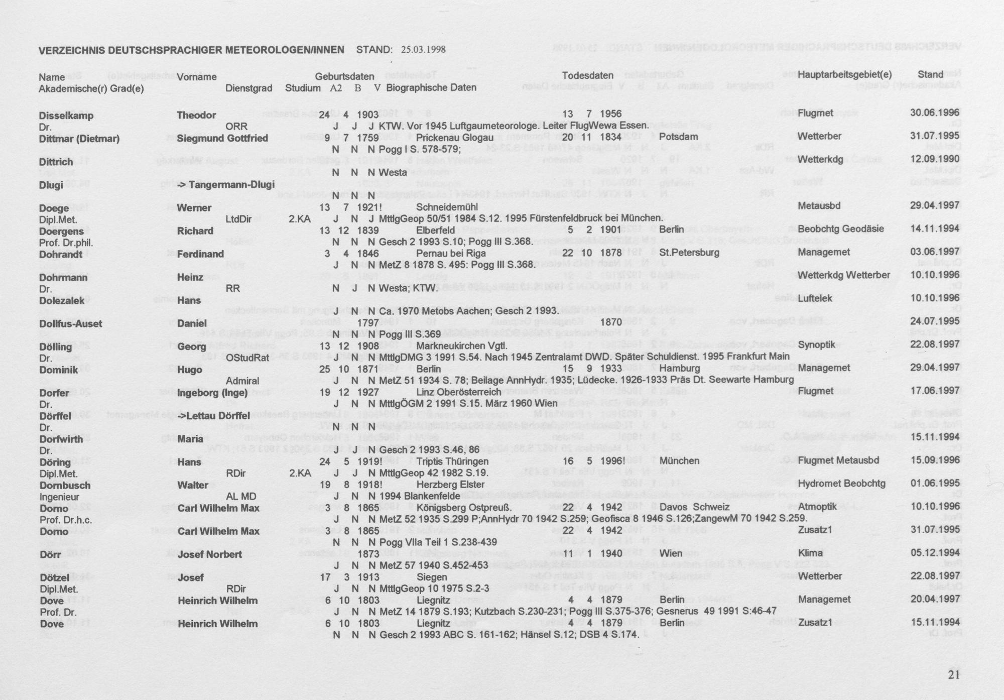 Meteorologen und Meteorologinnen aus dem deutschen Sprachraum : ein biographisches Findbuch ; Auszug aus der Wolfgang-von-Bezold-Sammlung der Deutschen Meteorologischen Gesellschaft e. V. / zsgest. von Rudolf F. Paulus ; ...