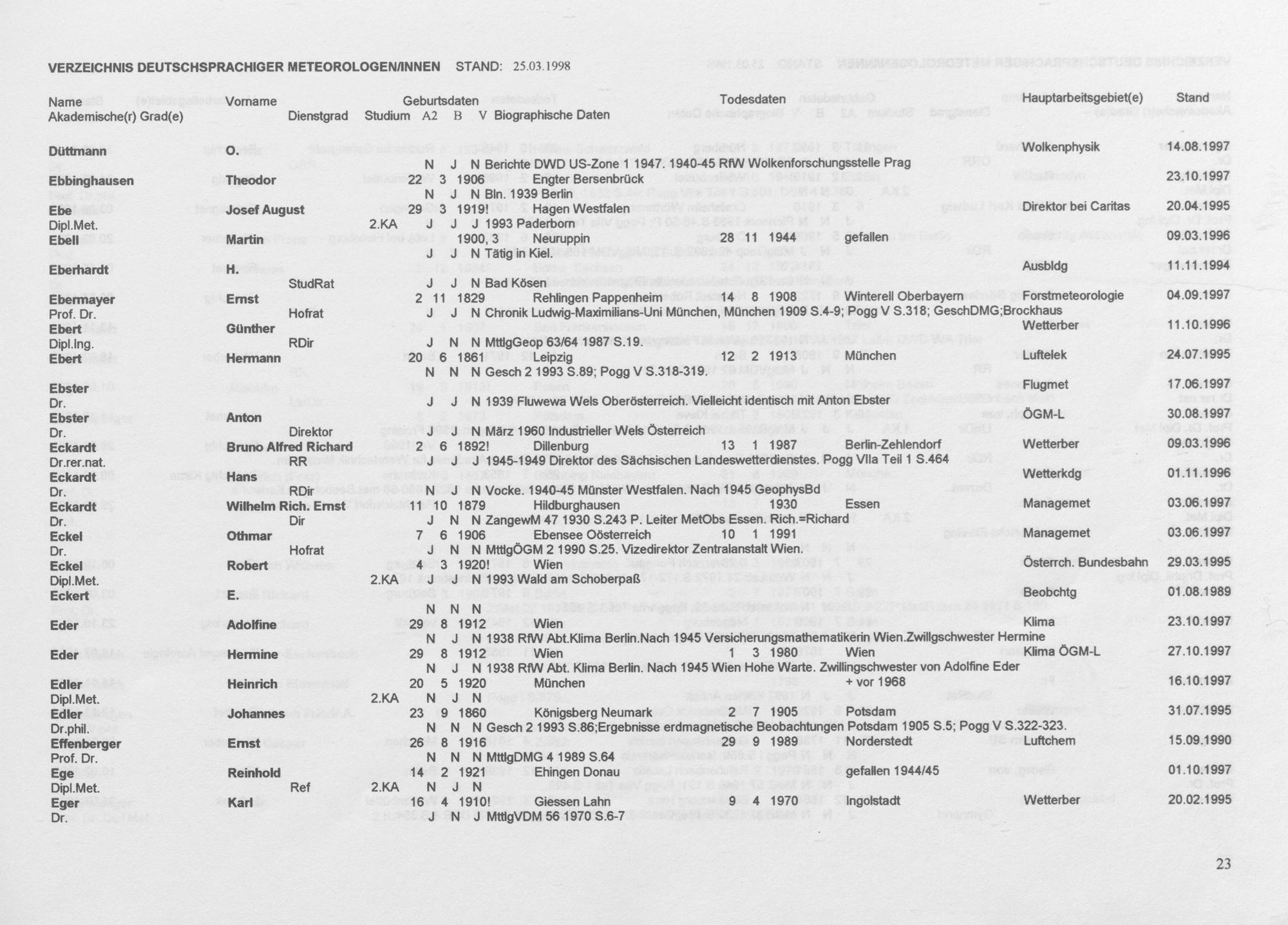 Meteorologen und Meteorologinnen aus dem deutschen Sprachraum : ein biographisches Findbuch ; Auszug aus der Wolfgang-von-Bezold-Sammlung der Deutschen Meteorologischen Gesellschaft e. V. / zsgest. von Rudolf F. Paulus ; ...