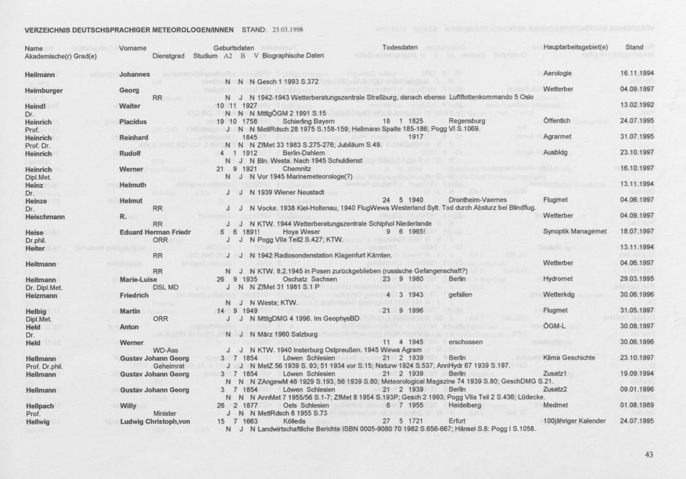Meteorologen und Meteorologinnen aus dem deutschen Sprachraum : ein biographisches Findbuch ; Auszug aus der Wolfgang-von-Bezold-Sammlung der Deutschen Meteorologischen Gesellschaft e. V. / zsgest. von Rudolf F. Paulus ; ...