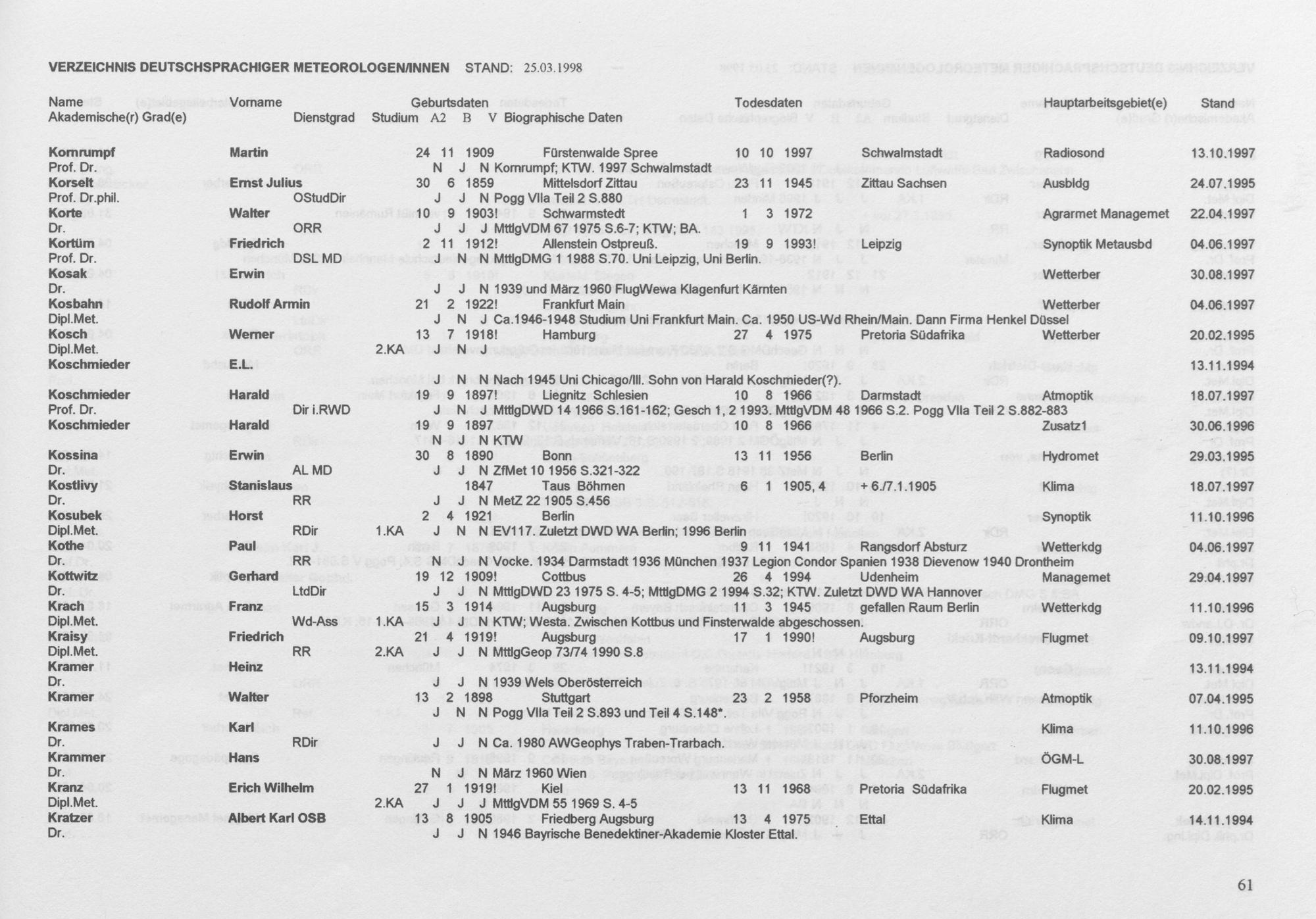 Meteorologen und Meteorologinnen aus dem deutschen Sprachraum : ein biographisches Findbuch ; Auszug aus der Wolfgang-von-Bezold-Sammlung der Deutschen Meteorologischen Gesellschaft e. V. / zsgest. von Rudolf F. Paulus ; ...