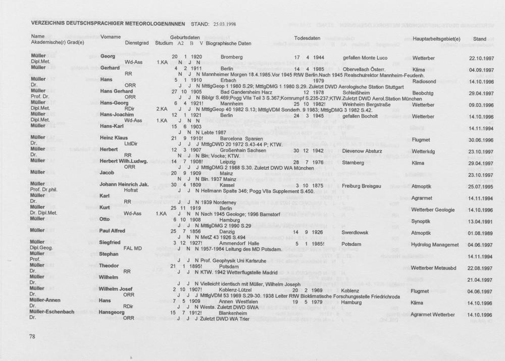 Meteorologen und Meteorologinnen aus dem deutschen Sprachraum : ein biographisches Findbuch ; Auszug aus der Wolfgang-von-Bezold-Sammlung der Deutschen Meteorologischen Gesellschaft e. V. / zsgest. von Rudolf F. Paulus ; ...