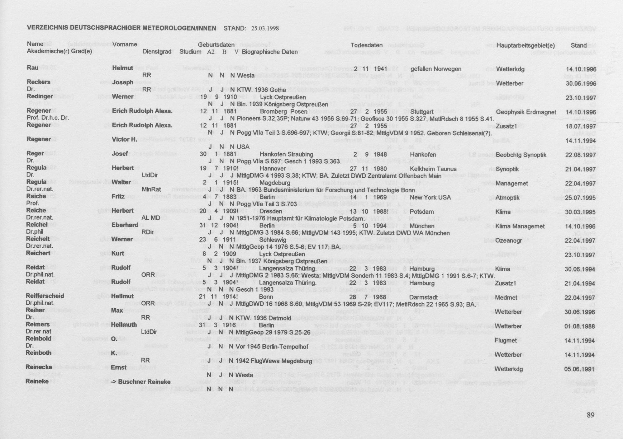 Meteorologen und Meteorologinnen aus dem deutschen Sprachraum : ein biographisches Findbuch ; Auszug aus der Wolfgang-von-Bezold-Sammlung der Deutschen Meteorologischen Gesellschaft e. V. / zsgest. von Rudolf F. Paulus ; ...