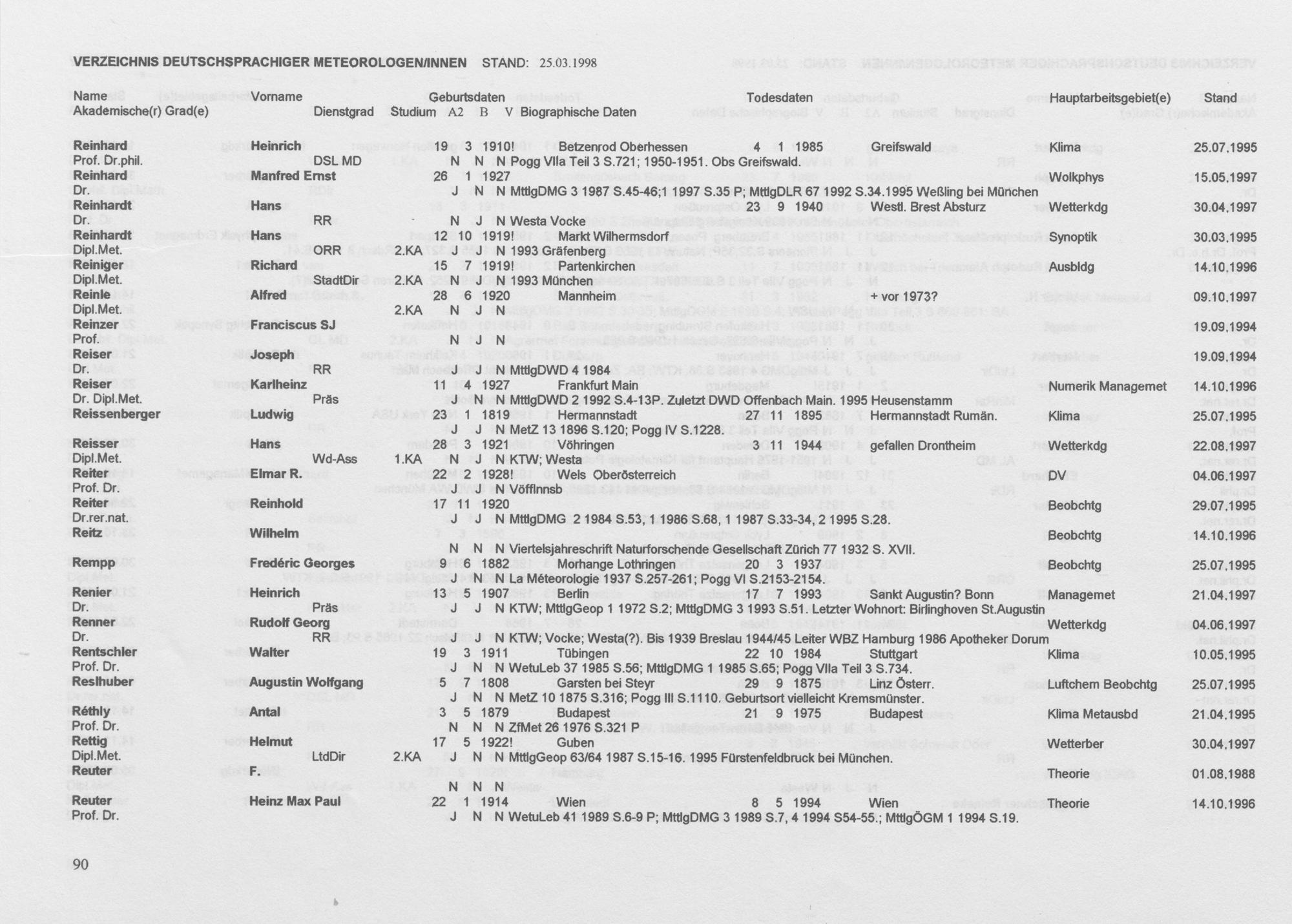 Meteorologen und Meteorologinnen aus dem deutschen Sprachraum : ein biographisches Findbuch ; Auszug aus der Wolfgang-von-Bezold-Sammlung der Deutschen Meteorologischen Gesellschaft e. V. / zsgest. von Rudolf F. Paulus ; ...