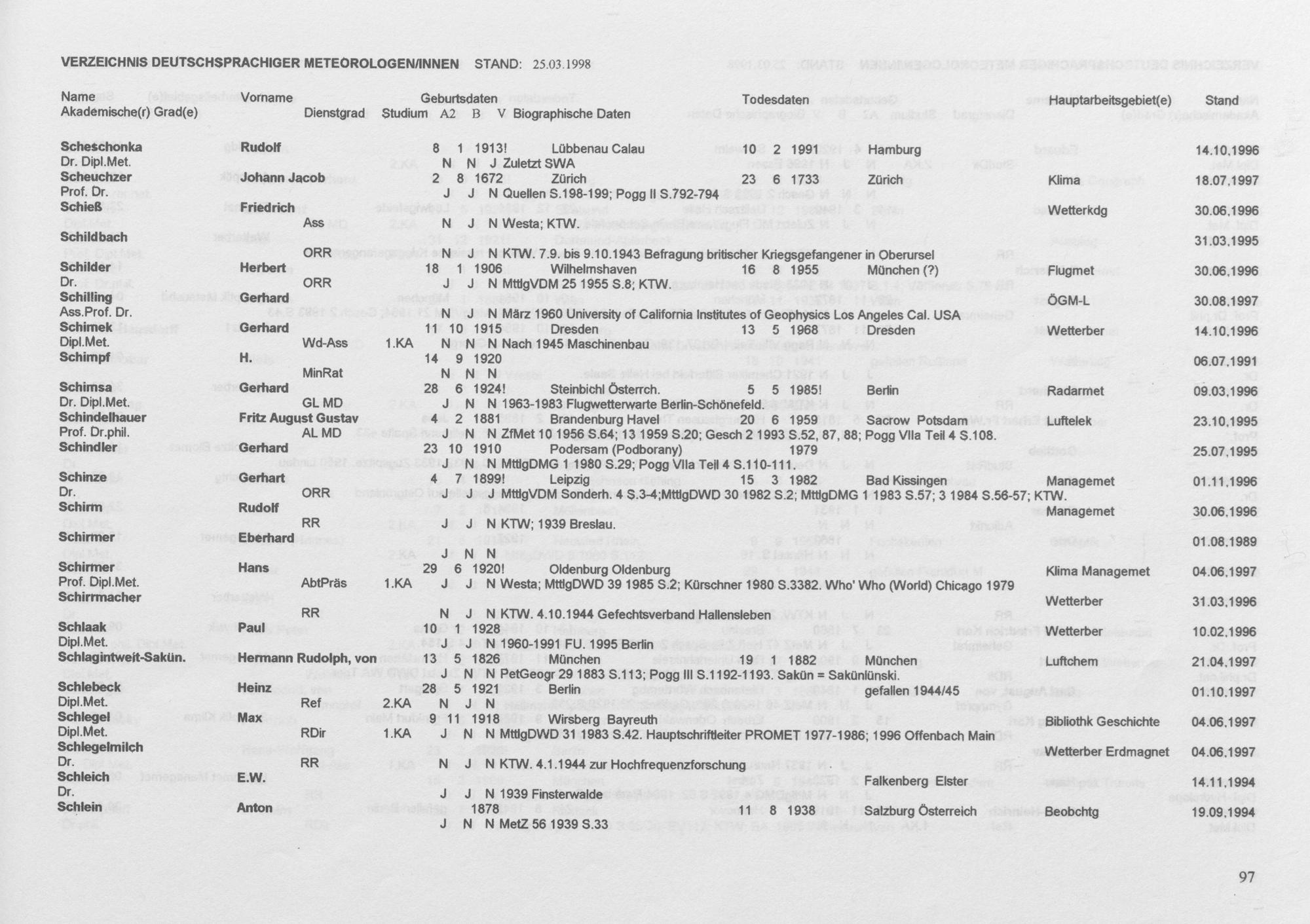 Meteorologen und Meteorologinnen aus dem deutschen Sprachraum : ein biographisches Findbuch ; Auszug aus der Wolfgang-von-Bezold-Sammlung der Deutschen Meteorologischen Gesellschaft e. V. / zsgest. von Rudolf F. Paulus ; ...
