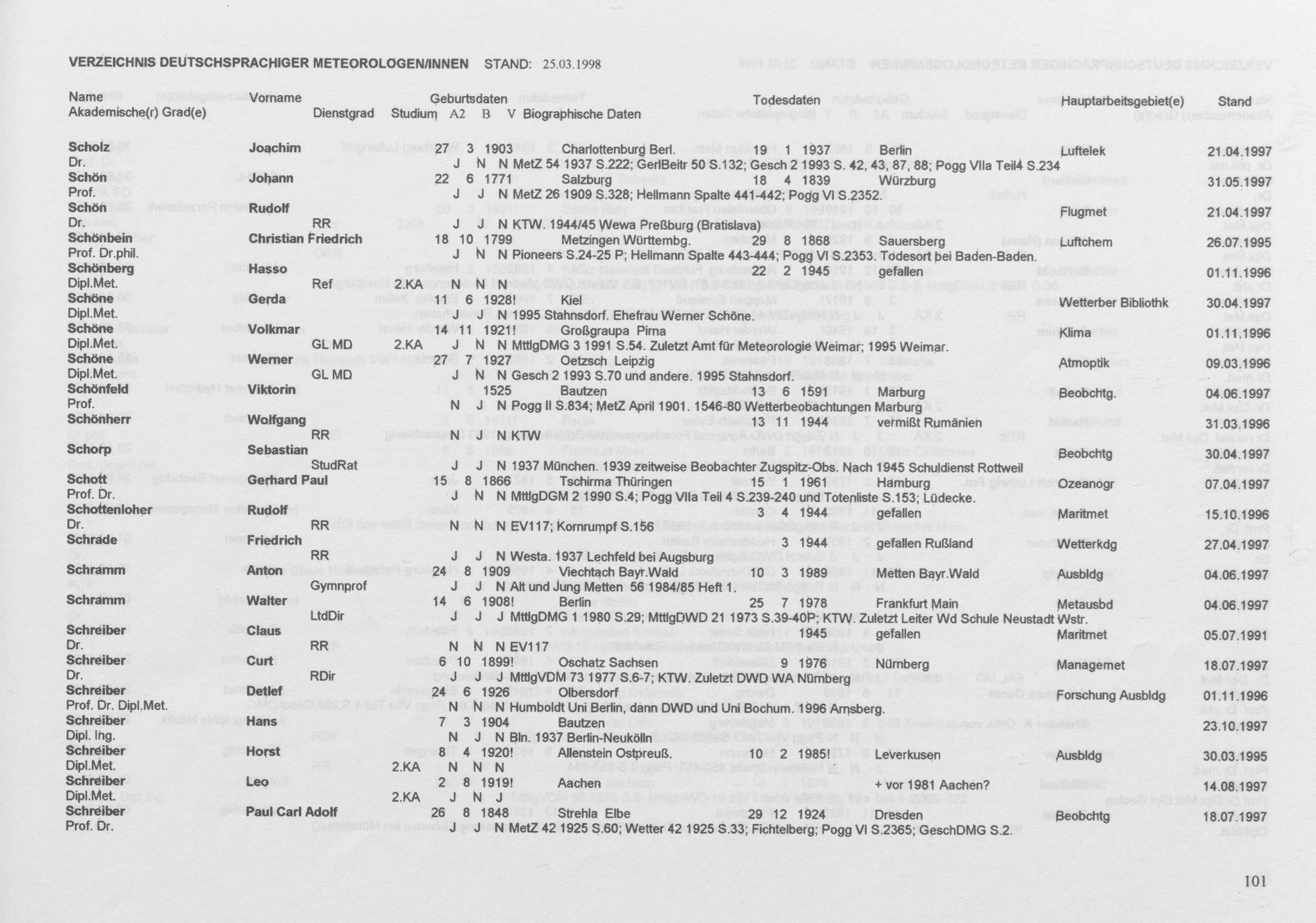 Meteorologen und Meteorologinnen aus dem deutschen Sprachraum : ein biographisches Findbuch ; Auszug aus der Wolfgang-von-Bezold-Sammlung der Deutschen Meteorologischen Gesellschaft e. V. / zsgest. von Rudolf F. Paulus ; ...