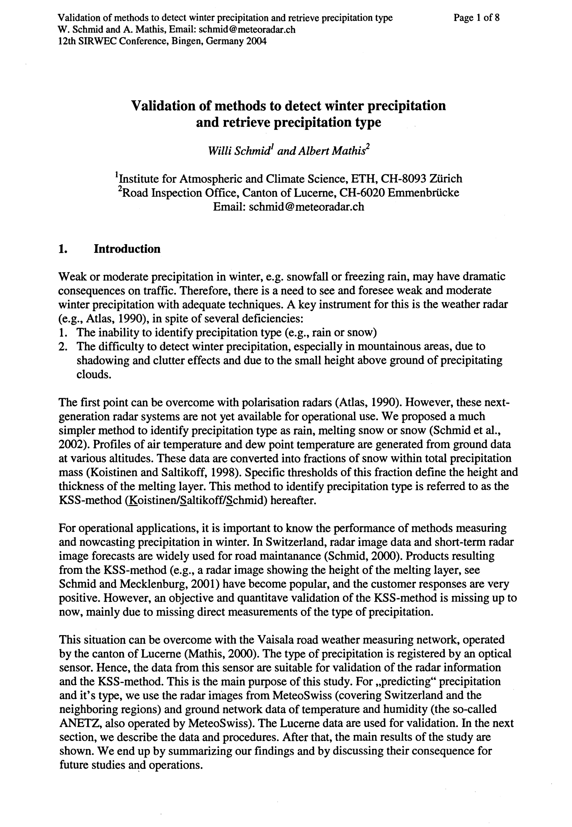 Willi Schmid, Albert Mathis: Validation of methods to detect winter precipitation and...