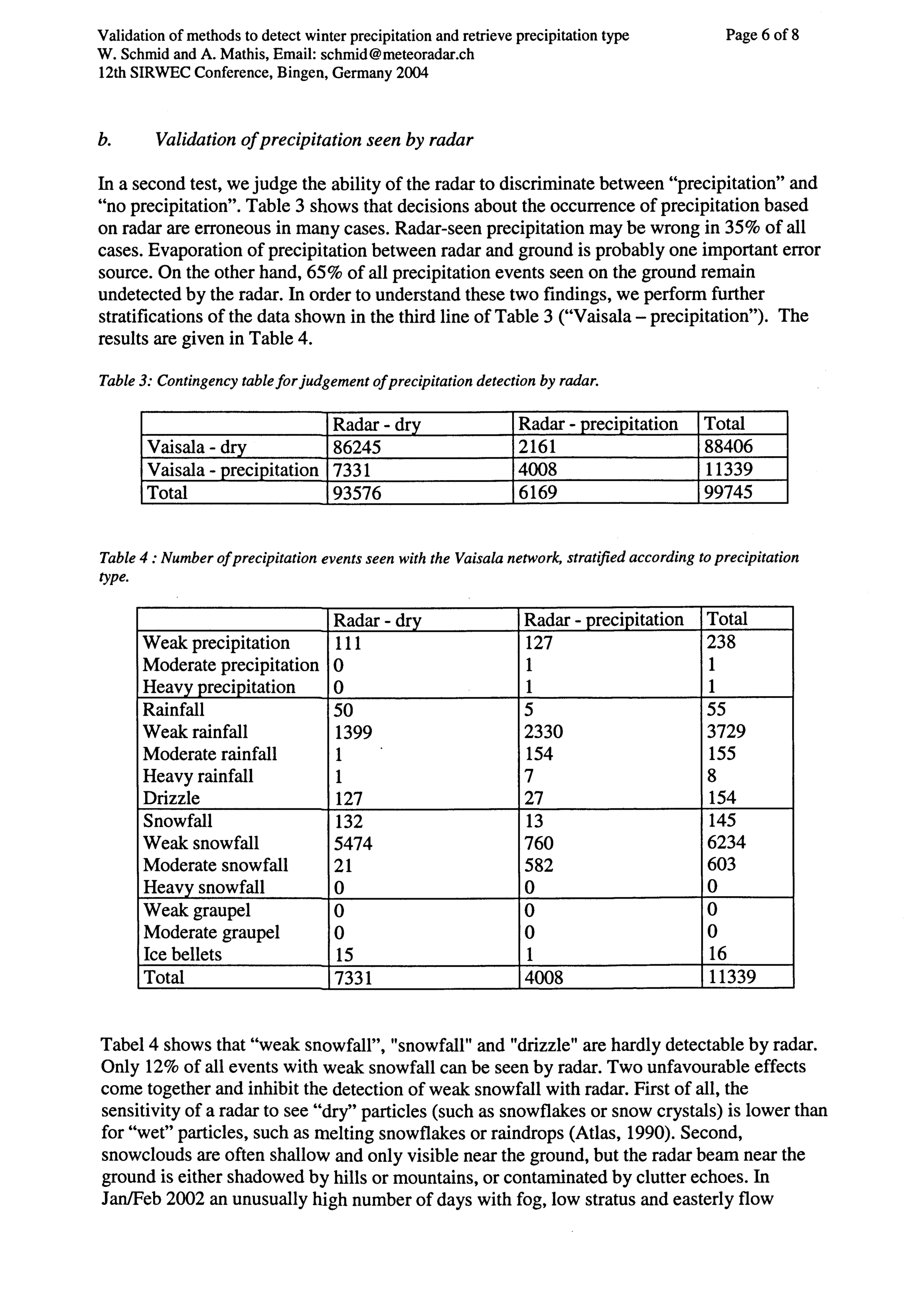 Willi Schmid, Albert Mathis: Validation of methods to detect winter precipitation and...