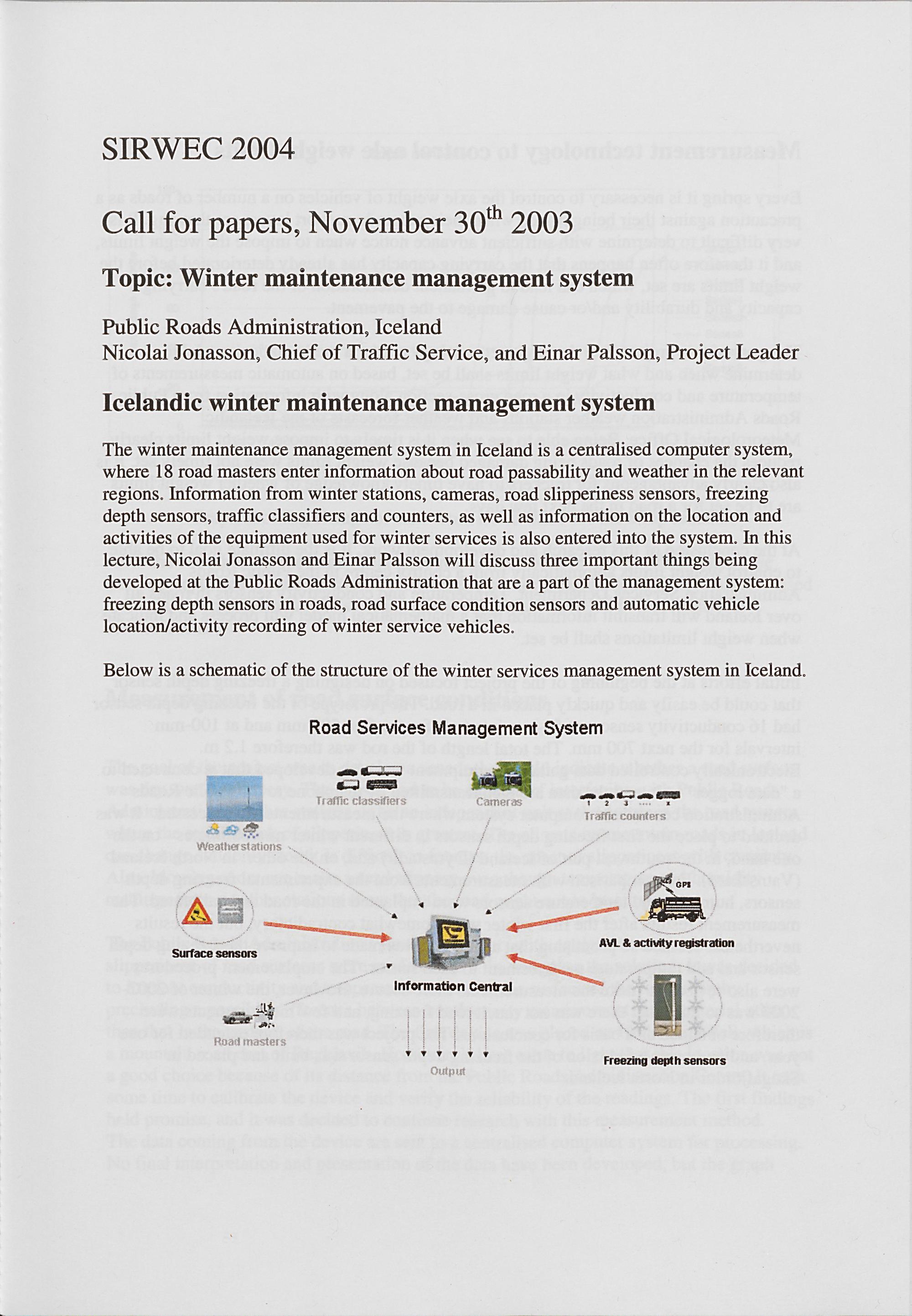 Submitted Papers Topic V: Winter Maintenance Management Systems, Methods and Po...