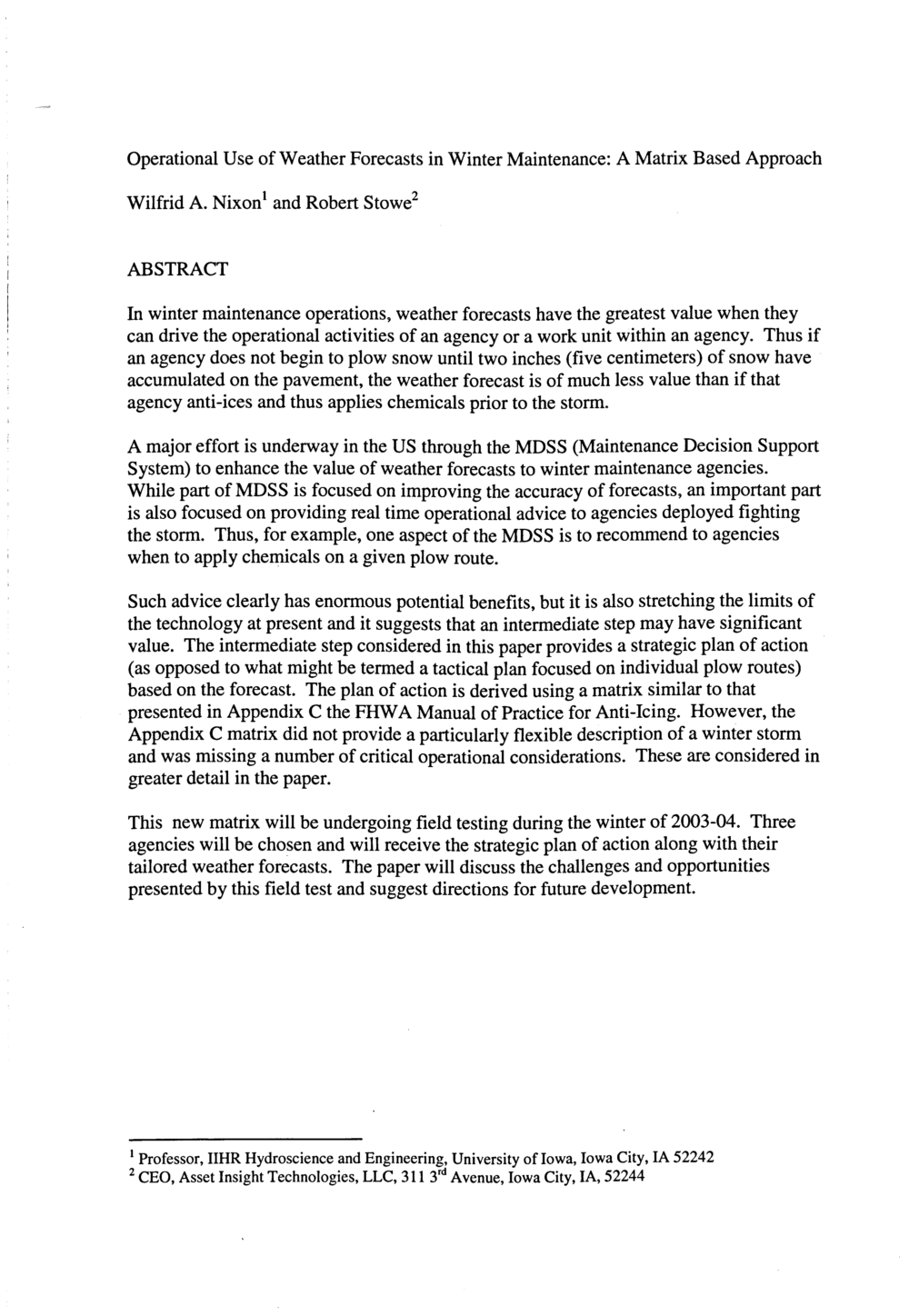SIRWEC 2004 : 12th International Road Weather Conference, 16th - 18th June 2004, Bingen (on Rhine), Germany
