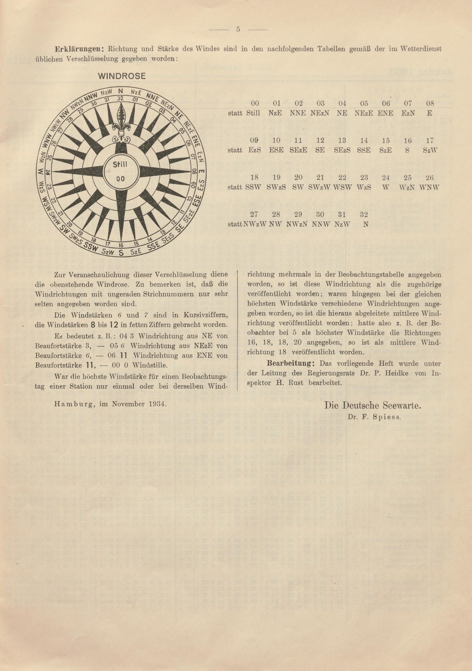 Zur Statistik der Stürme an der Deutschen Küste : Beobachtungsjahr ... ; tägliche höchste Windstärke und zugehörige Windrichtung an den deutschen Küstenstationen und auf deutschen Feuerschiffen / Deutsche Seewarte