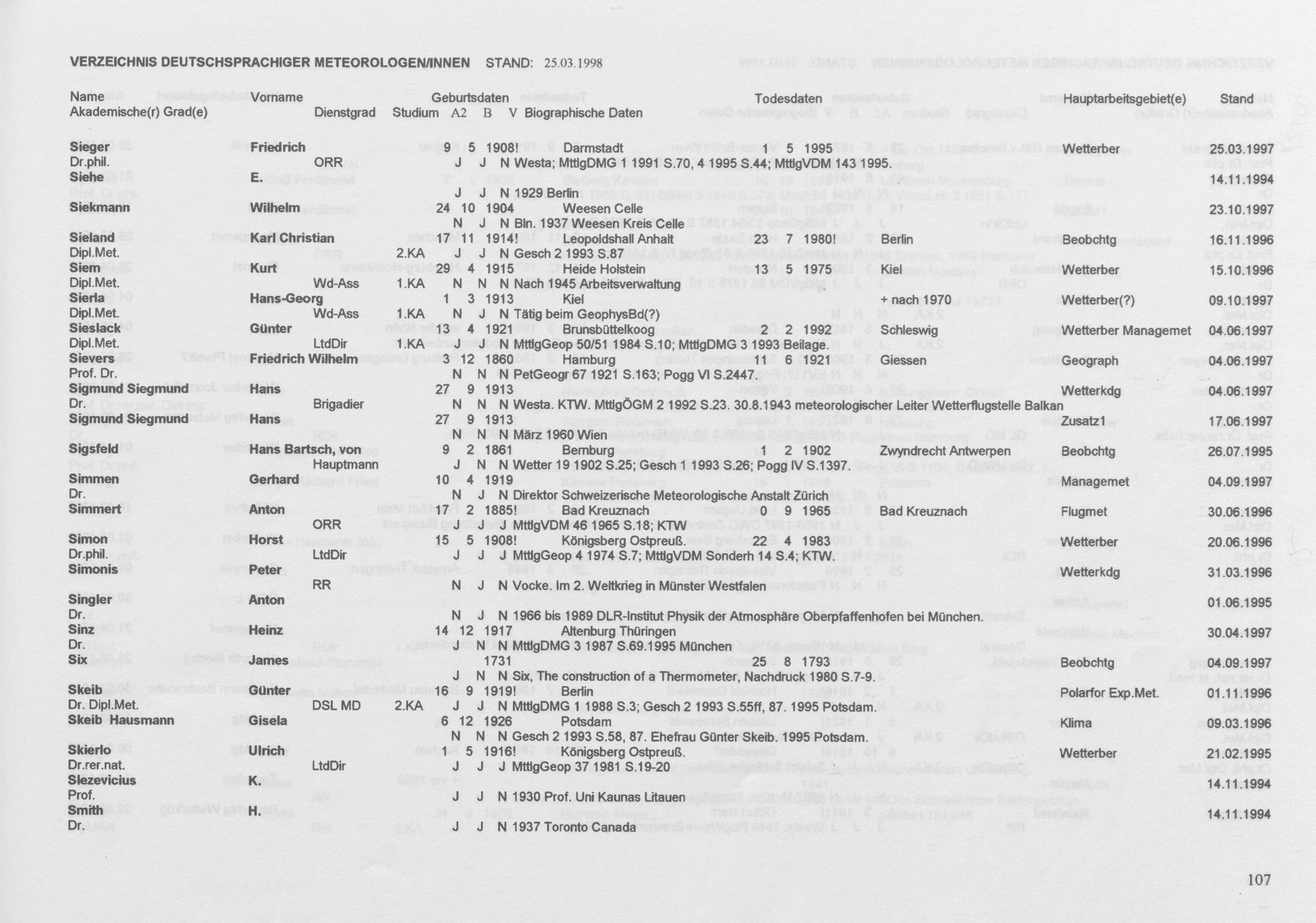 Meteorologen und Meteorologinnen aus dem deutschen Sprachraum : ein biographisches Findbuch ; Auszug aus der Wolfgang-von-Bezold-Sammlung der Deutschen Meteorologischen Gesellschaft e. V. / zsgest. von Rudolf F. Paulus ; ...