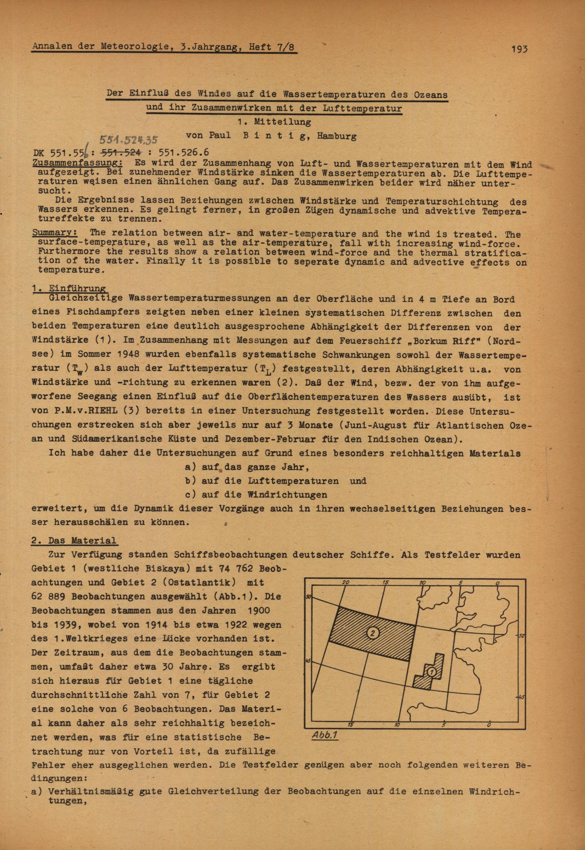 Der Einfluß des Windes auf die Wassertemperaturen des Ozeans und ihr Zusammenwirken mit der Lufttemperatur