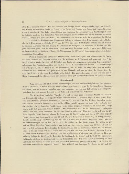 Himmelshelligkeit, Himmelspolarisation und Sonnenintensität in Davos 1911 - 1918