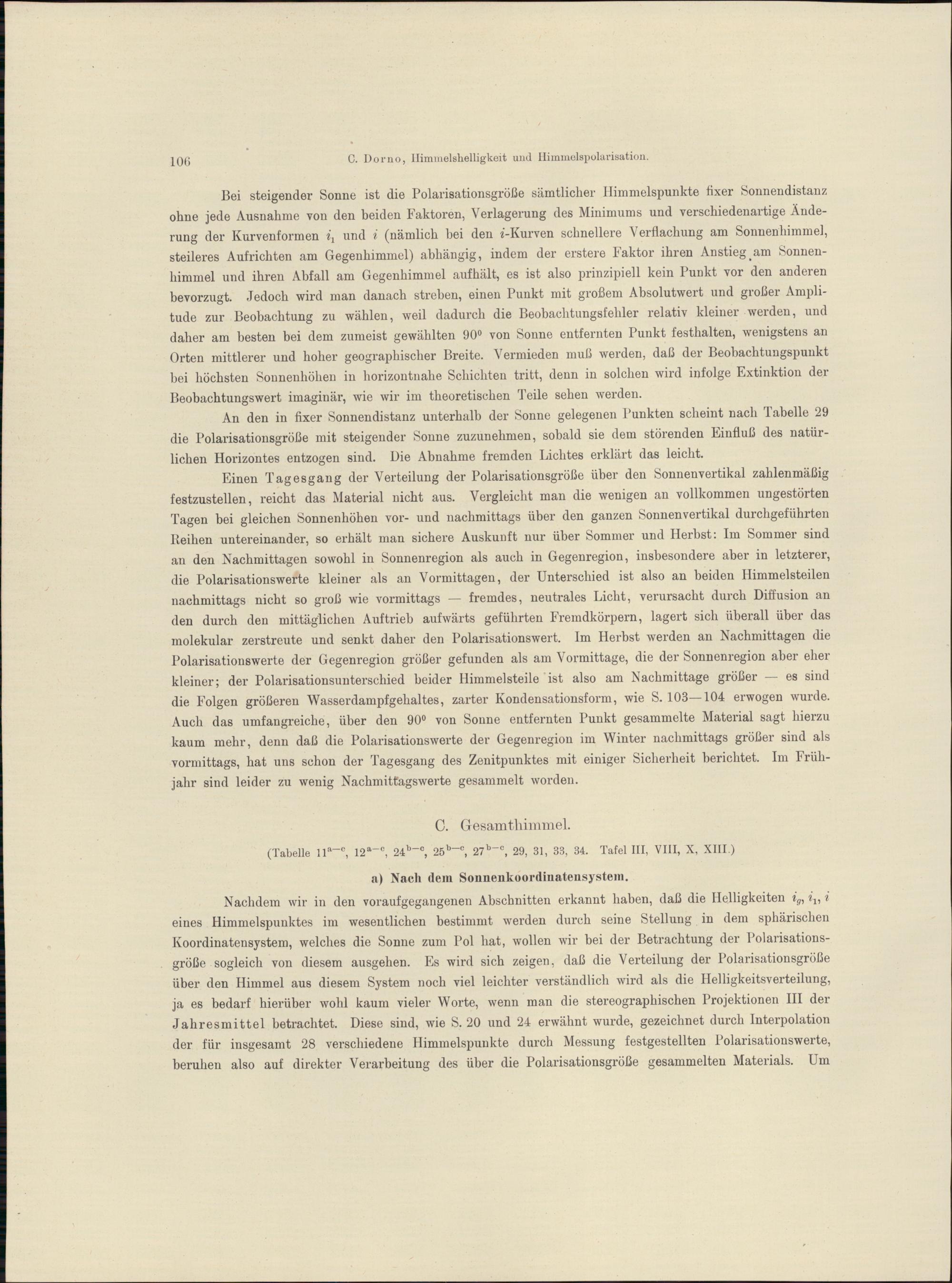 Himmelshelligkeit, Himmelspolarisation und Sonnenintensität in Davos 1911 - 1918