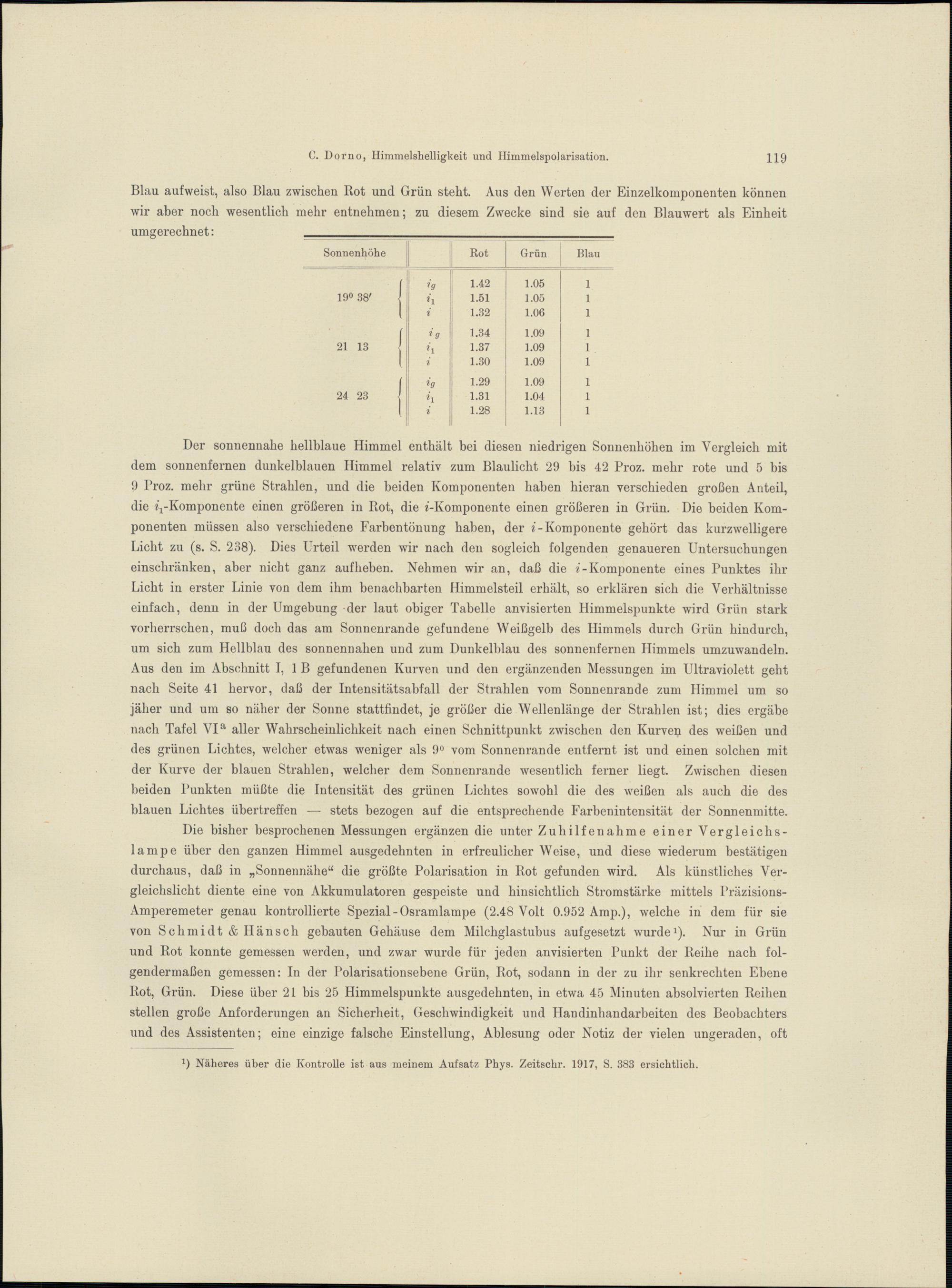 Himmelshelligkeit, Himmelspolarisation und Sonnenintensität in Davos 1911 - 1918
