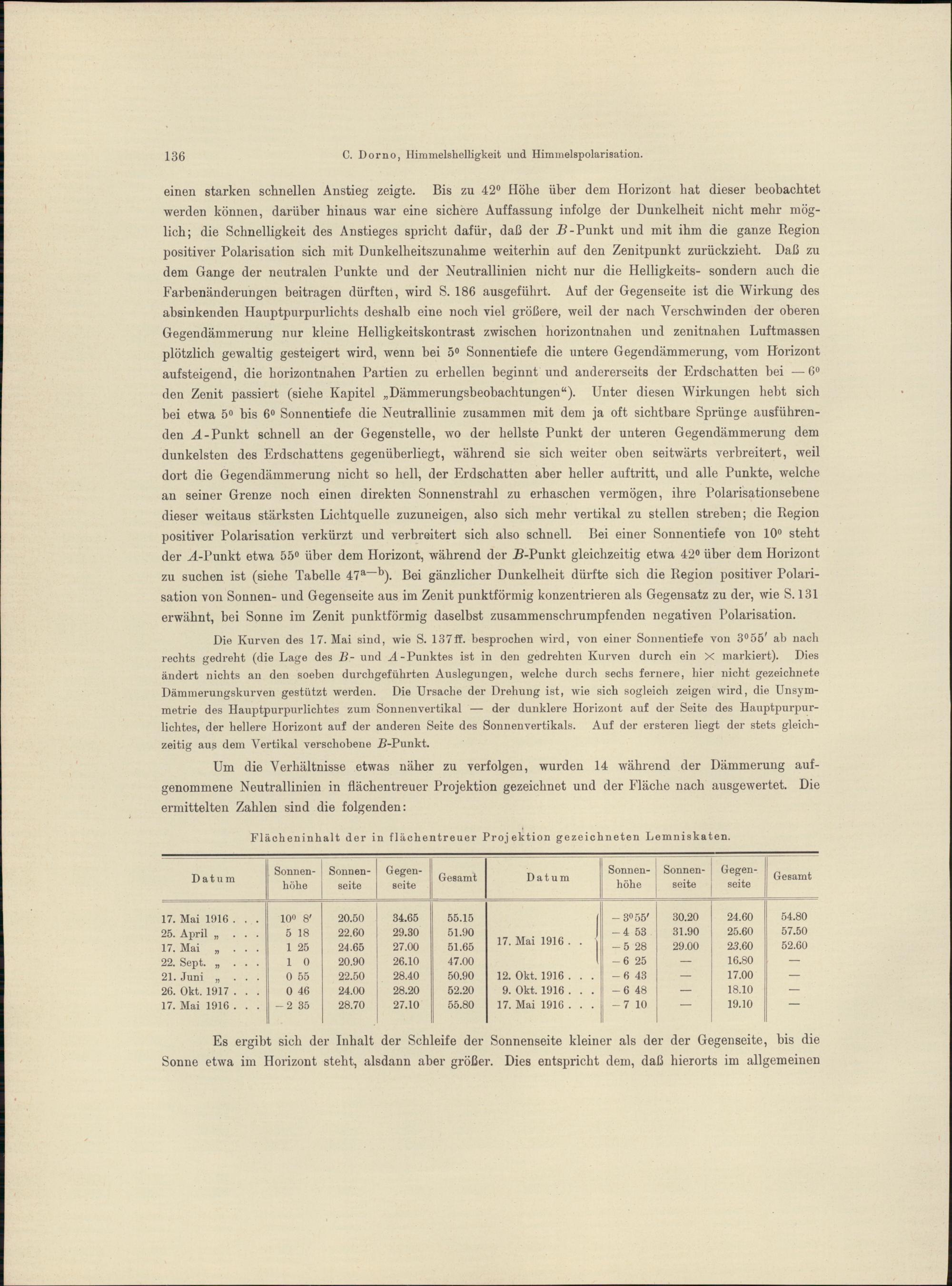 Himmelshelligkeit, Himmelspolarisation und Sonnenintensität in Davos 1911 - 1918