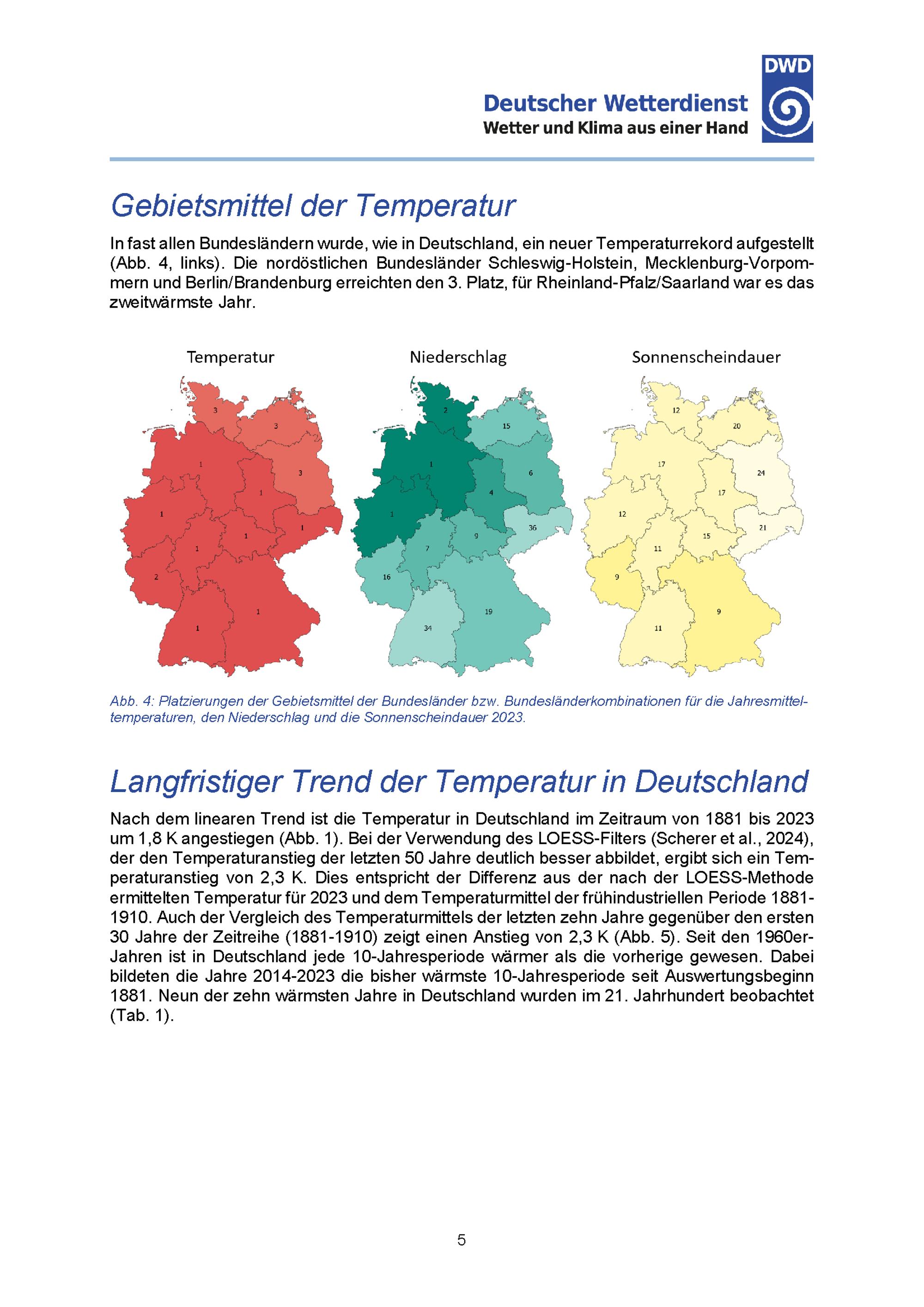 Klimatologischer Rückblick auf 2023: Das bisher wärmste Jahr in Deutschland / Autoren: K. Friedrich, D. Niermann, F. Imbery, P. Bissolli, J. Daßler, V. Zins, S. Haeseler, M. Ziese ; Deutscher Wetterdienst