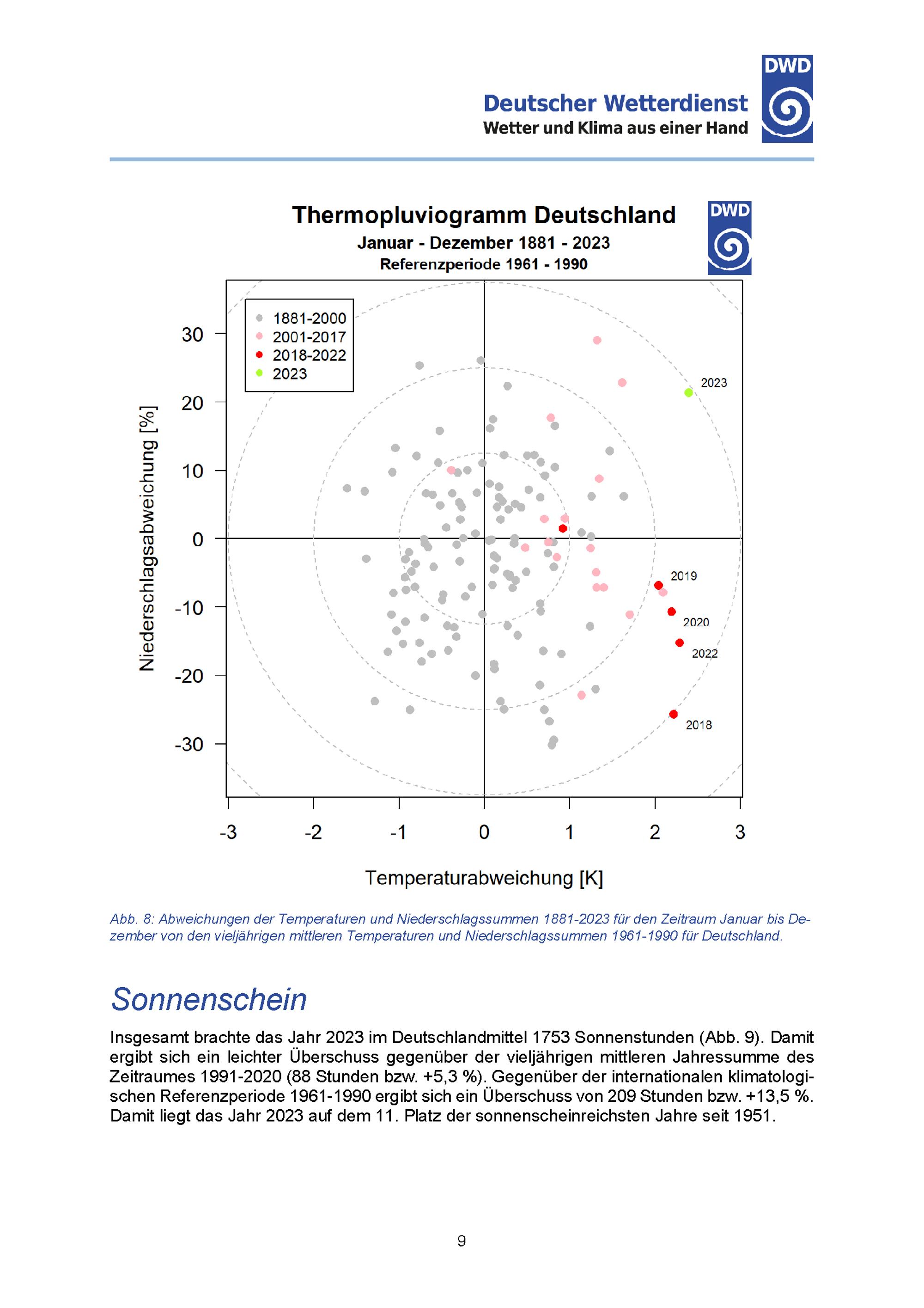 Klimatologischer Rückblick auf 2023: Das bisher wärmste Jahr in Deutschland / Autoren: K. Friedrich, D. Niermann, F. Imbery, P. Bissolli, J. Daßler, V. Zins, S. Haeseler, M. Ziese ; Deutscher Wetterdienst