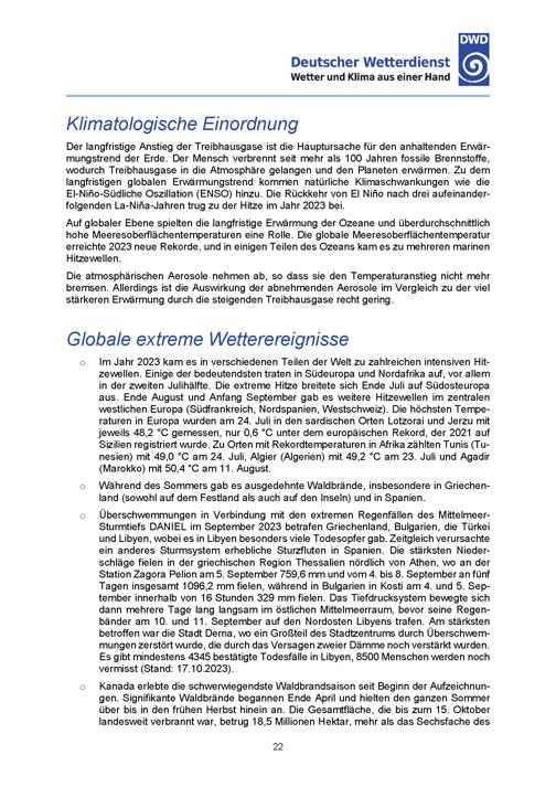 Klimatologischer Rückblick auf 2023: Das bisher wärmste Jahr in Deutschland / Autoren: K. Friedrich, D. Niermann, F. Imbery, P. Bissolli, J. Daßler, V. Zins, S. Haeseler, M. Ziese ; Deutscher Wetterdienst
