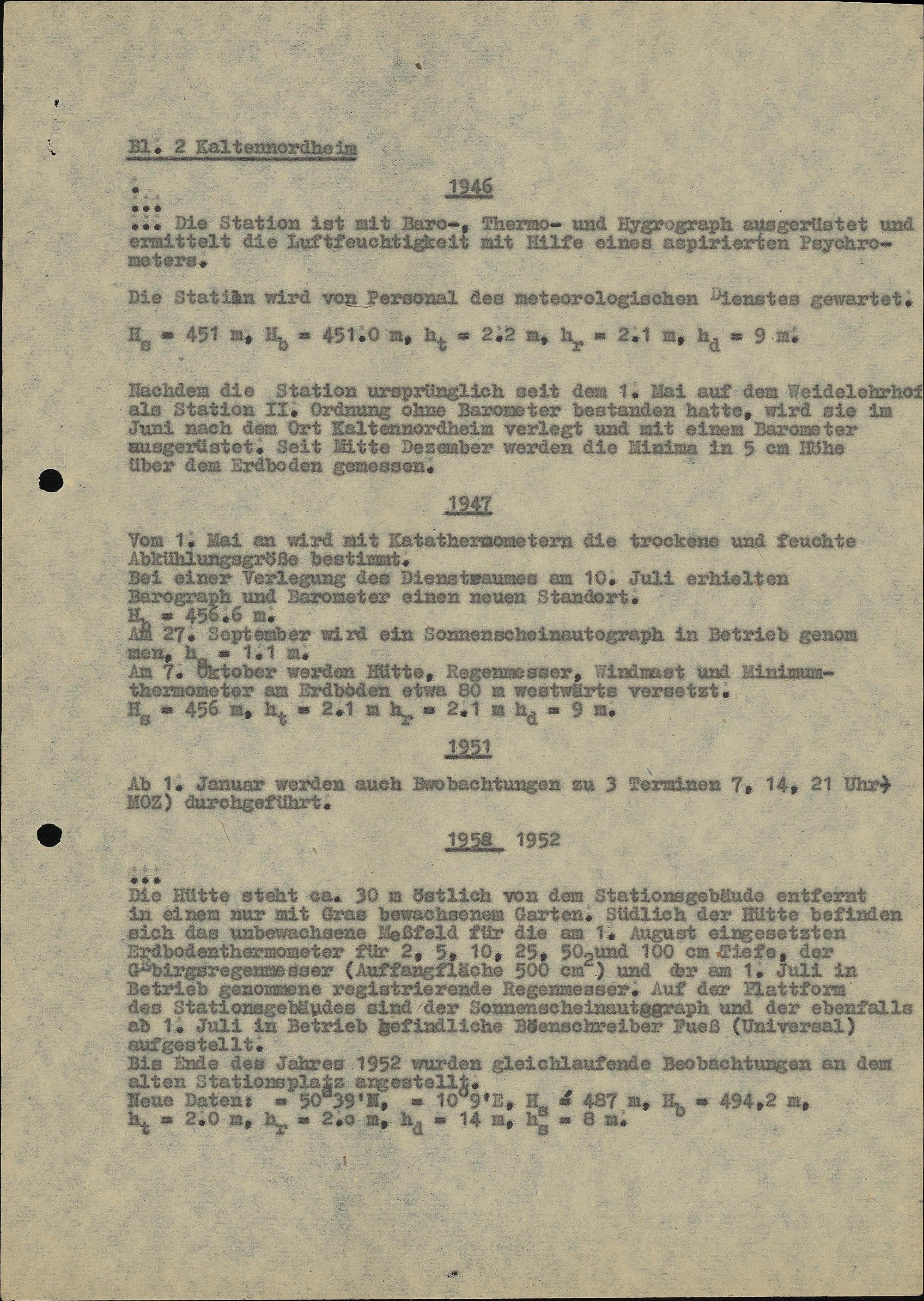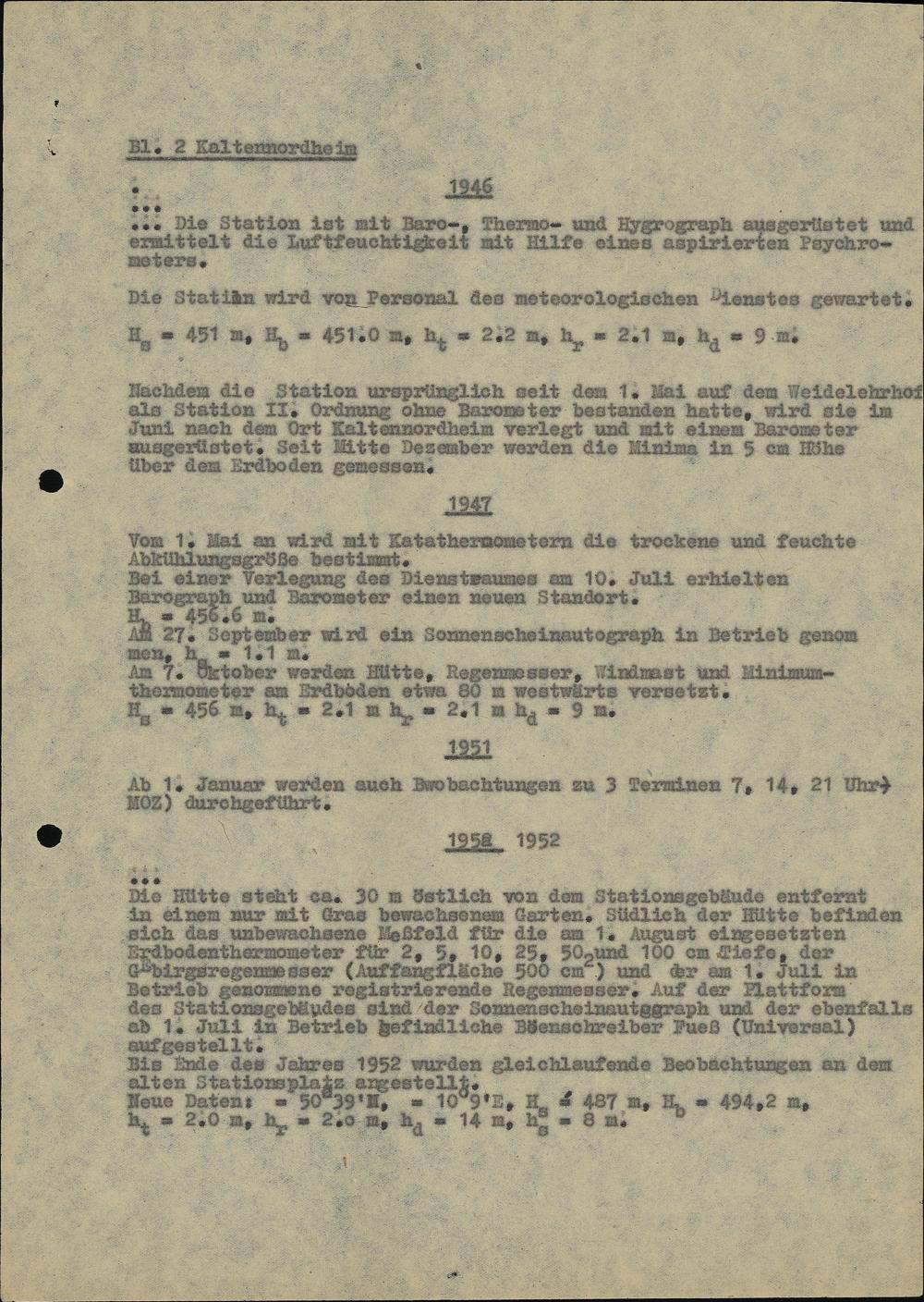 Auszug aus Jahrbuch 1946 Station Kaltennordheim