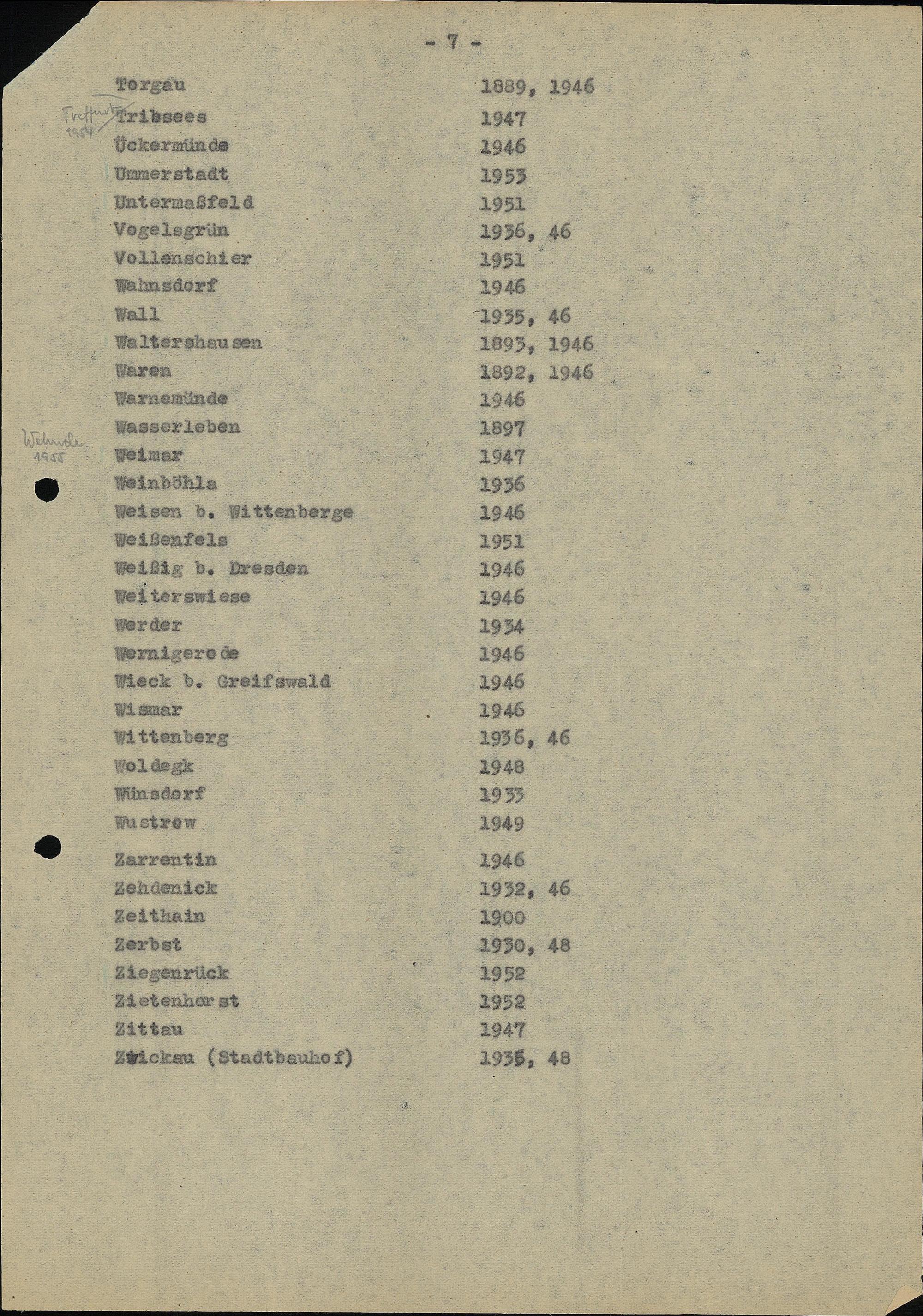 [Stationsbeschreibungen DDR-Jahrbuch 1883-1937 und 1946-1957] : [Veränderungen in den Jahrbüchern von 1883-1937 und 1946-1957]