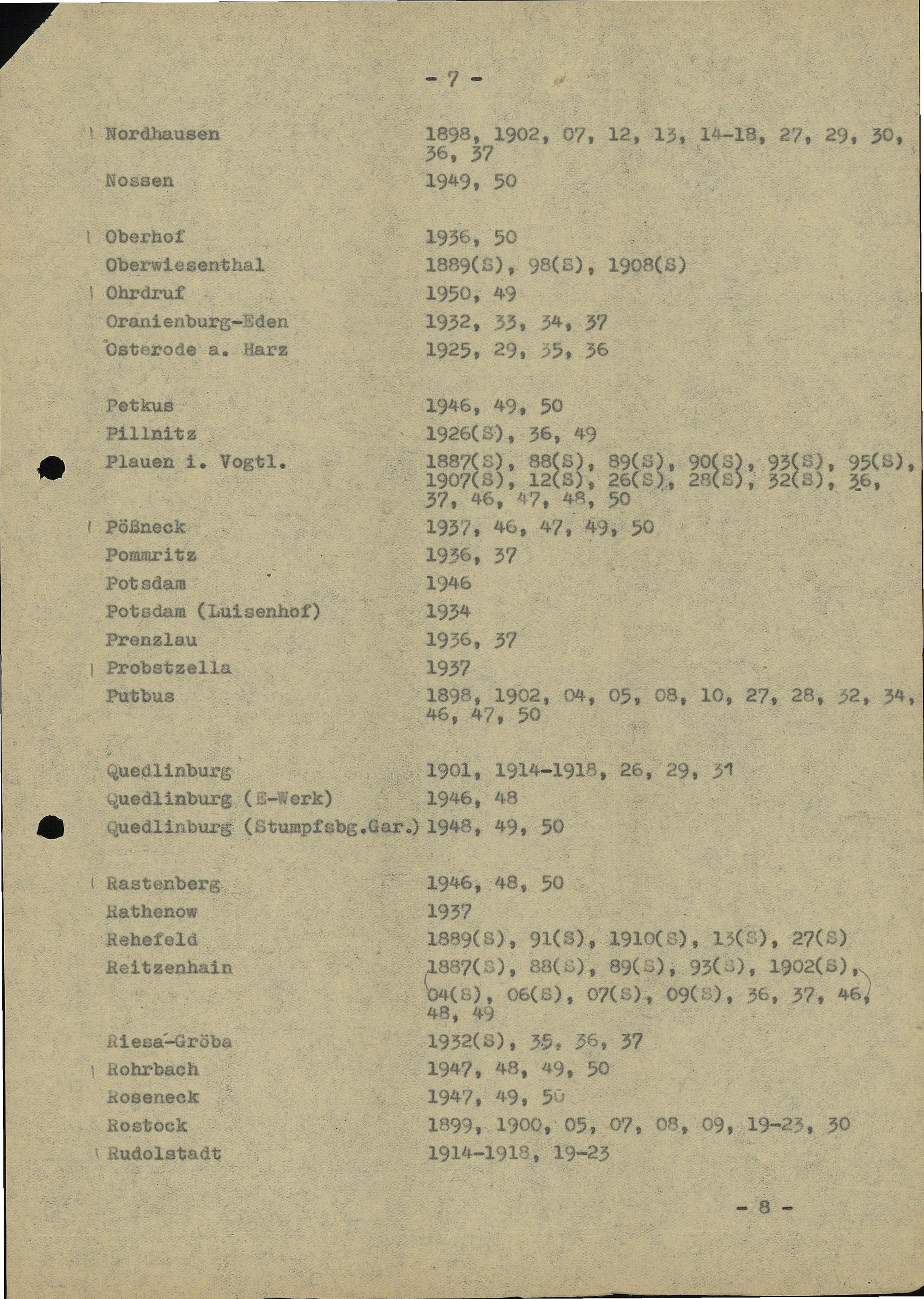 [Stationsbeschreibungen DDR-Jahrbuch 1883-1937 und 1946-1957] : [Veränderungen in den Jahrbüchern von 1883-1937 und 1946-1957]