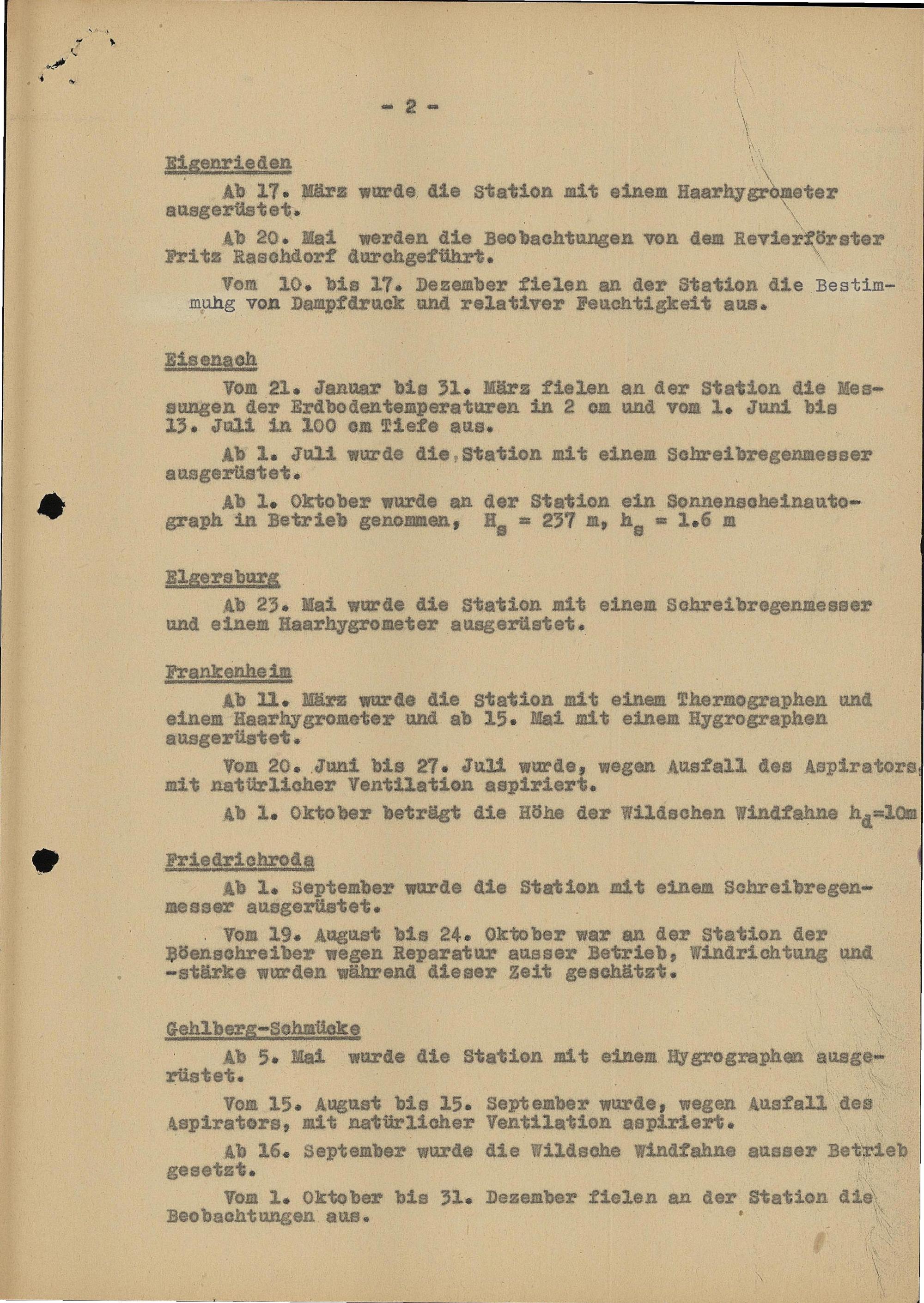 Auszug aus Jahrbuch 1946 Station Inselsberg
