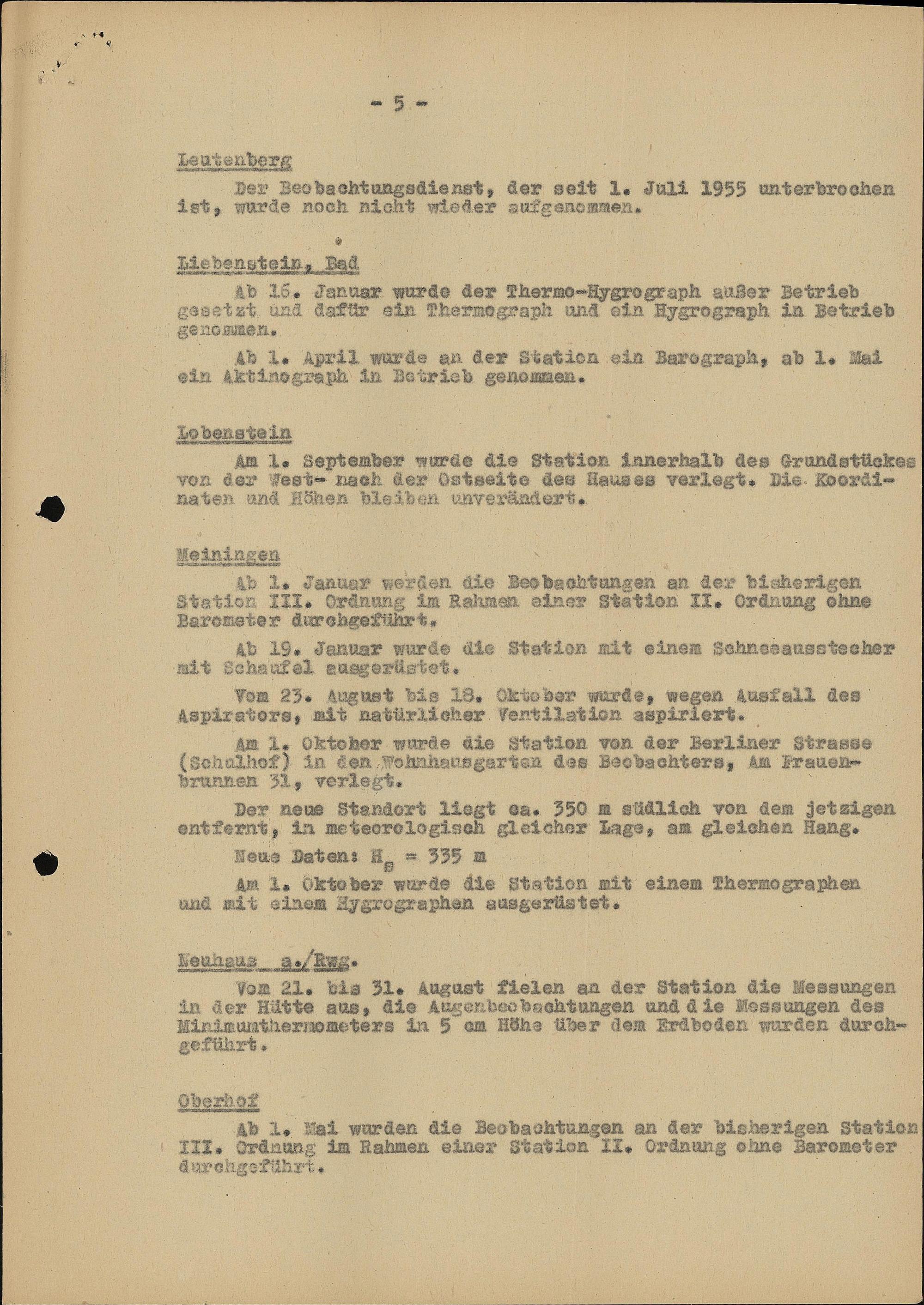 Veränderungen an den Stationen im Jahre 1955