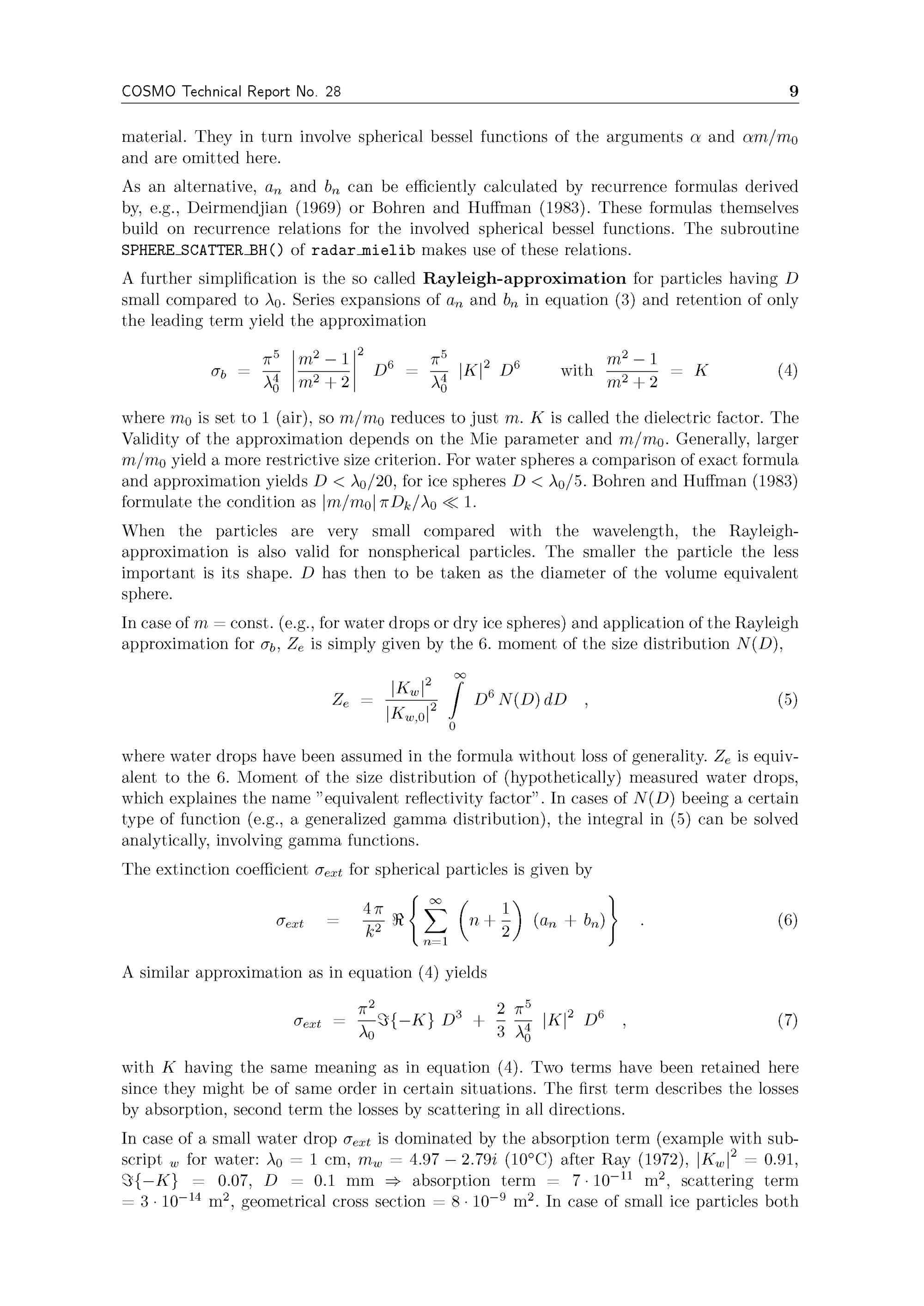 RADAR_MIE_LM and RADAR_MIELIB calculation of radar reflectivity from model output / Deutscher Wetterdienst ; Ulrich Blahak