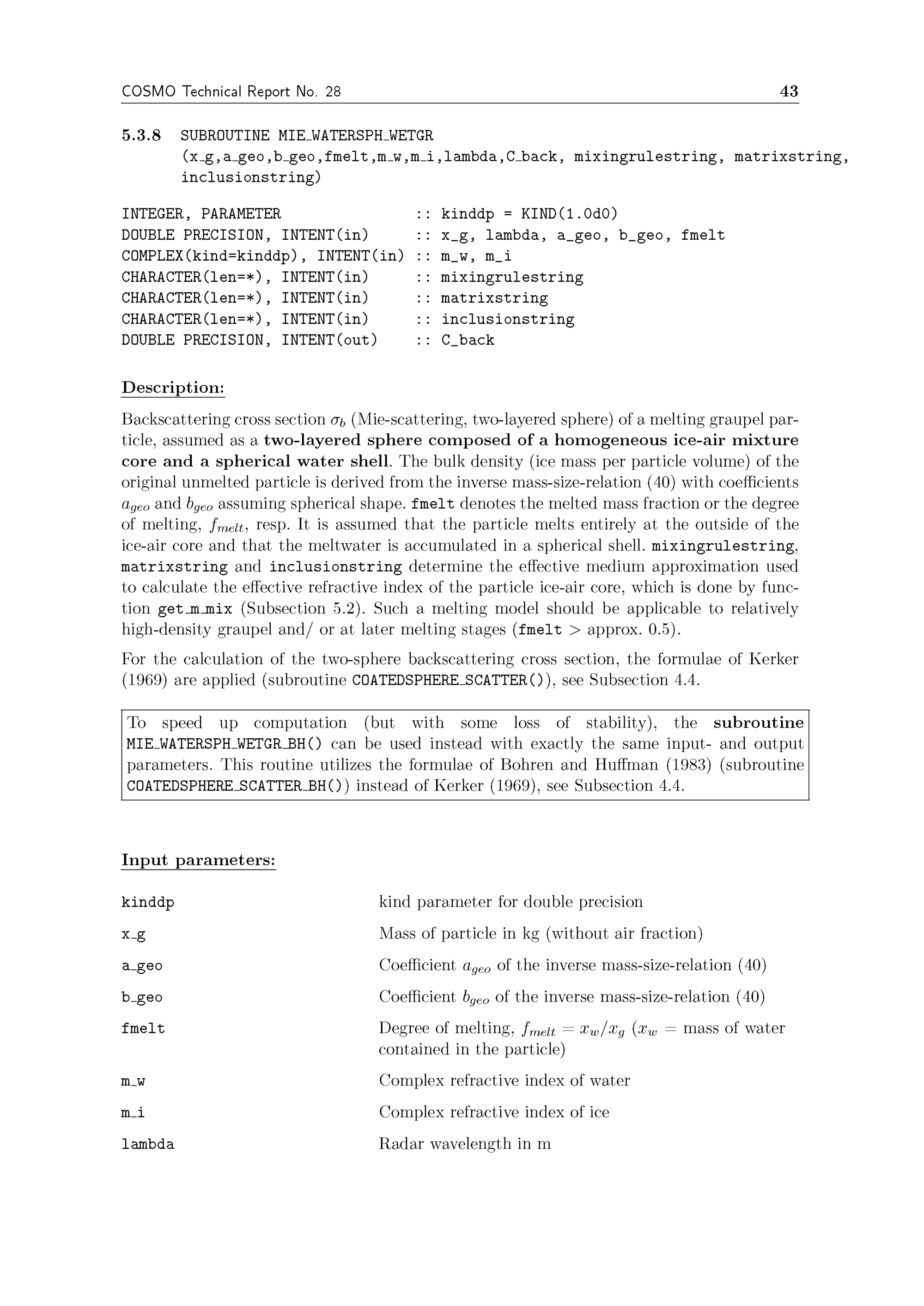RADAR_MIE_LM and RADAR_MIELIB calculation of radar reflectivity from model output / Deutscher Wetterdienst ; Ulrich Blahak