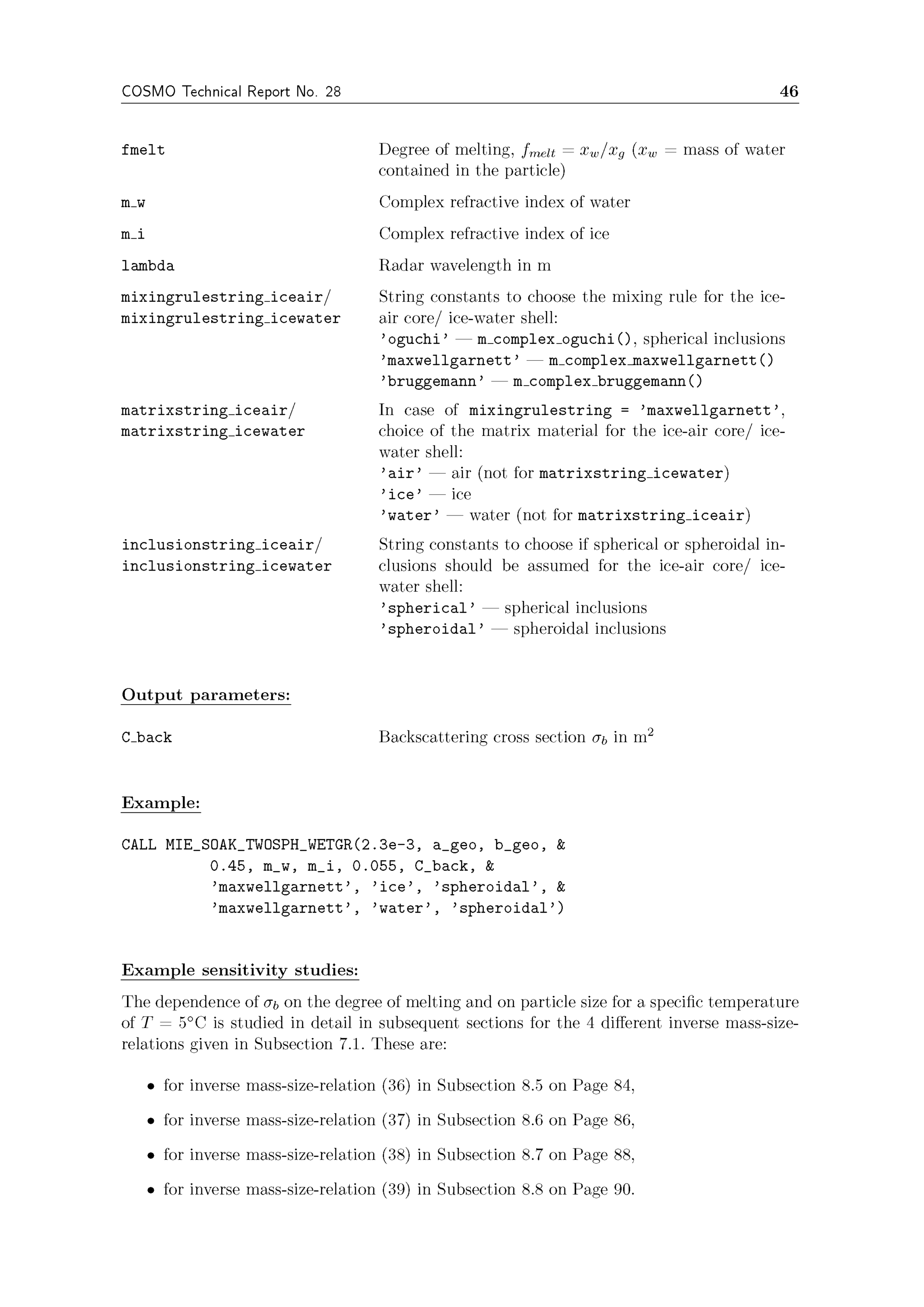 RADAR_MIE_LM and RADAR_MIELIB calculation of radar reflectivity from model output / Deutscher Wetterdienst ; Ulrich Blahak